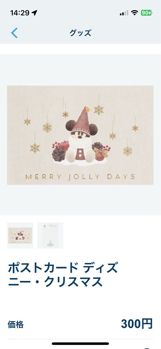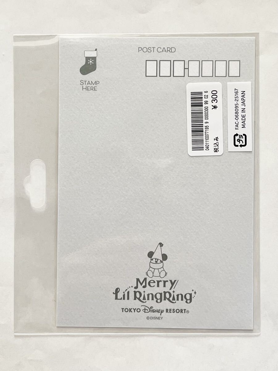○東京ディズニーランドで購入した2025年クリスマス、リルリンリンのポストカード。未使用。