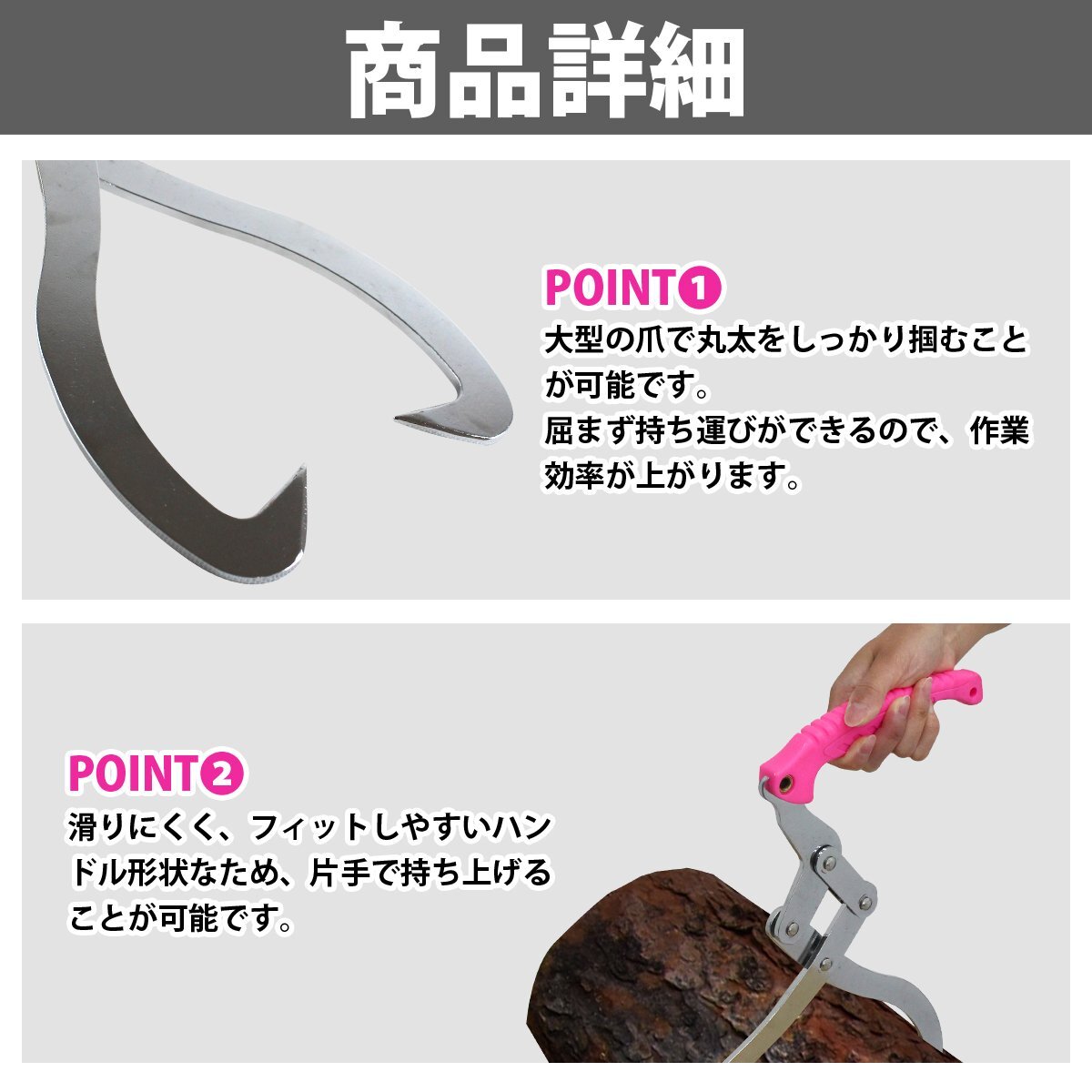 『2本 30cm ハンドル付』丸太 トング 木材 原木 リフティング トング 伐採 集材 林業 薪 薪割 移動 ハンド リフト リフター