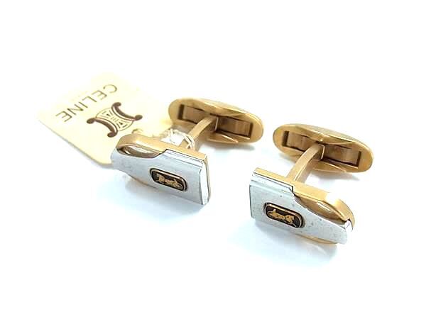 ■美品■ CELINE セリーヌ ヴィンテージ 馬車金具 カフスボタン カフリンクス アクセサリー メンズ シルバー系 DK7789