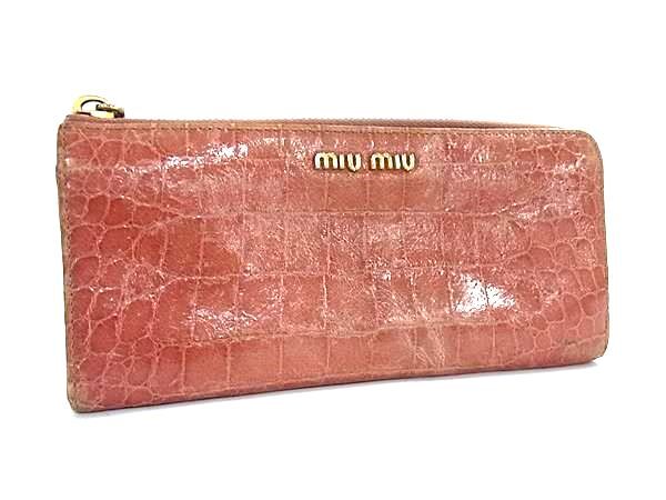miumiu ミュウミュウ クロコダイル型押しレザー L字ファスナー 長財布 ウォレット 札入れ 小銭入れ ピンクブラウン系 DJ9974