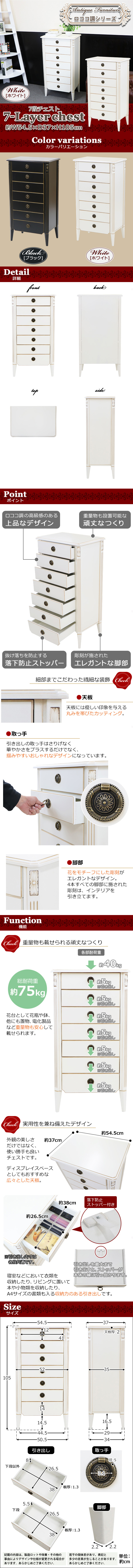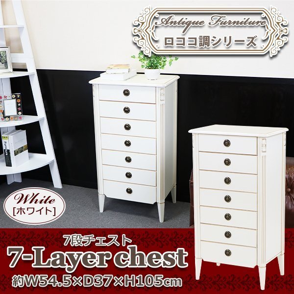 | 商品名 | 送料無料 ロココ調 7段チェスト ホワイト 約W54.5×約D37×約H105(cm) 収納 木製 ロココ アンティーク クラシック レトロ ヨーロピアン エレガント インテリア キャビネット サイドチェスト サイドボード 箪笥 タンス 完成品 家具 寝室 リビング おしゃれ 白 rococof114wh |