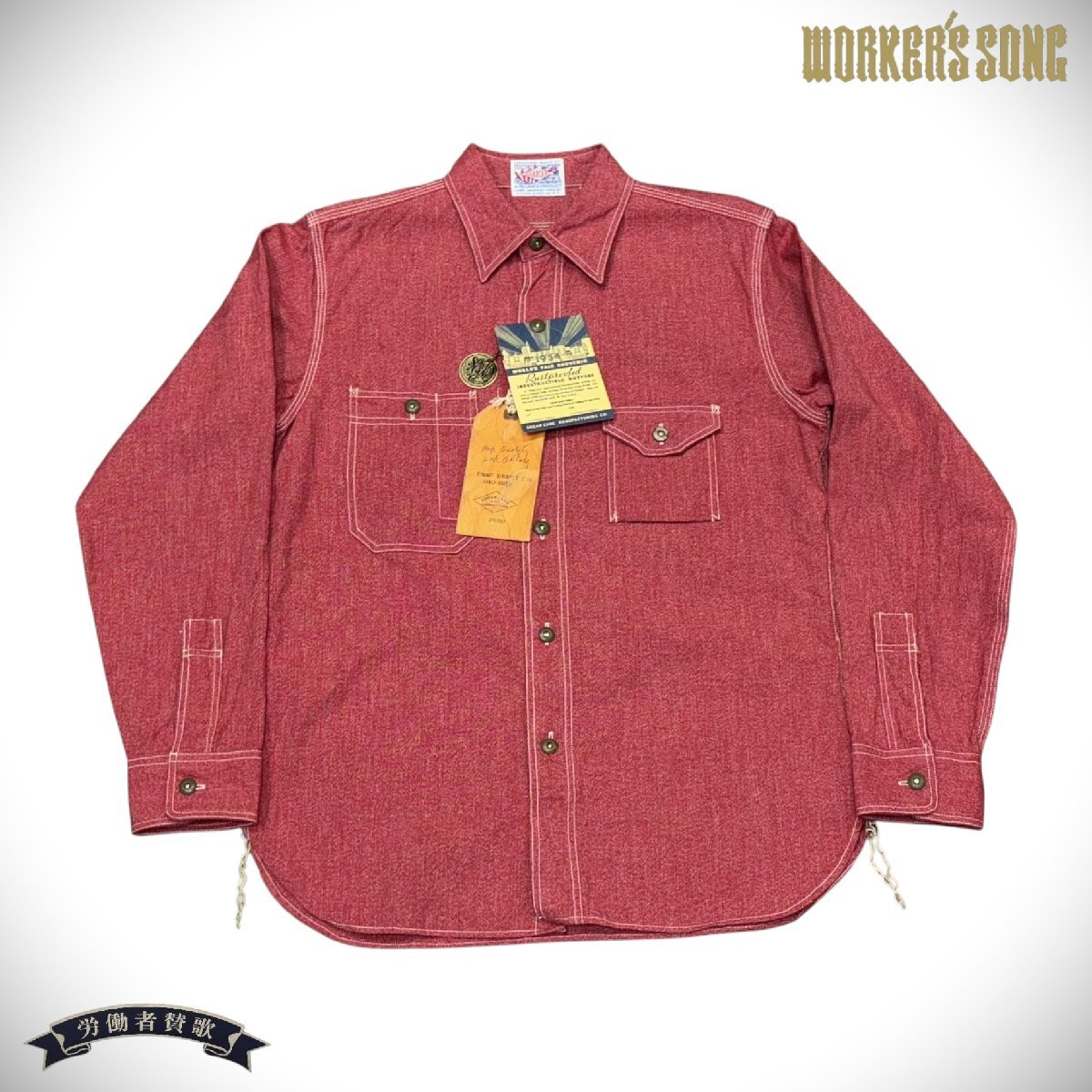 シュガーケーン コットンコバート スーベニア 長袖 ワークシャツ アメカジ SC28281 165 レッド S トップス
