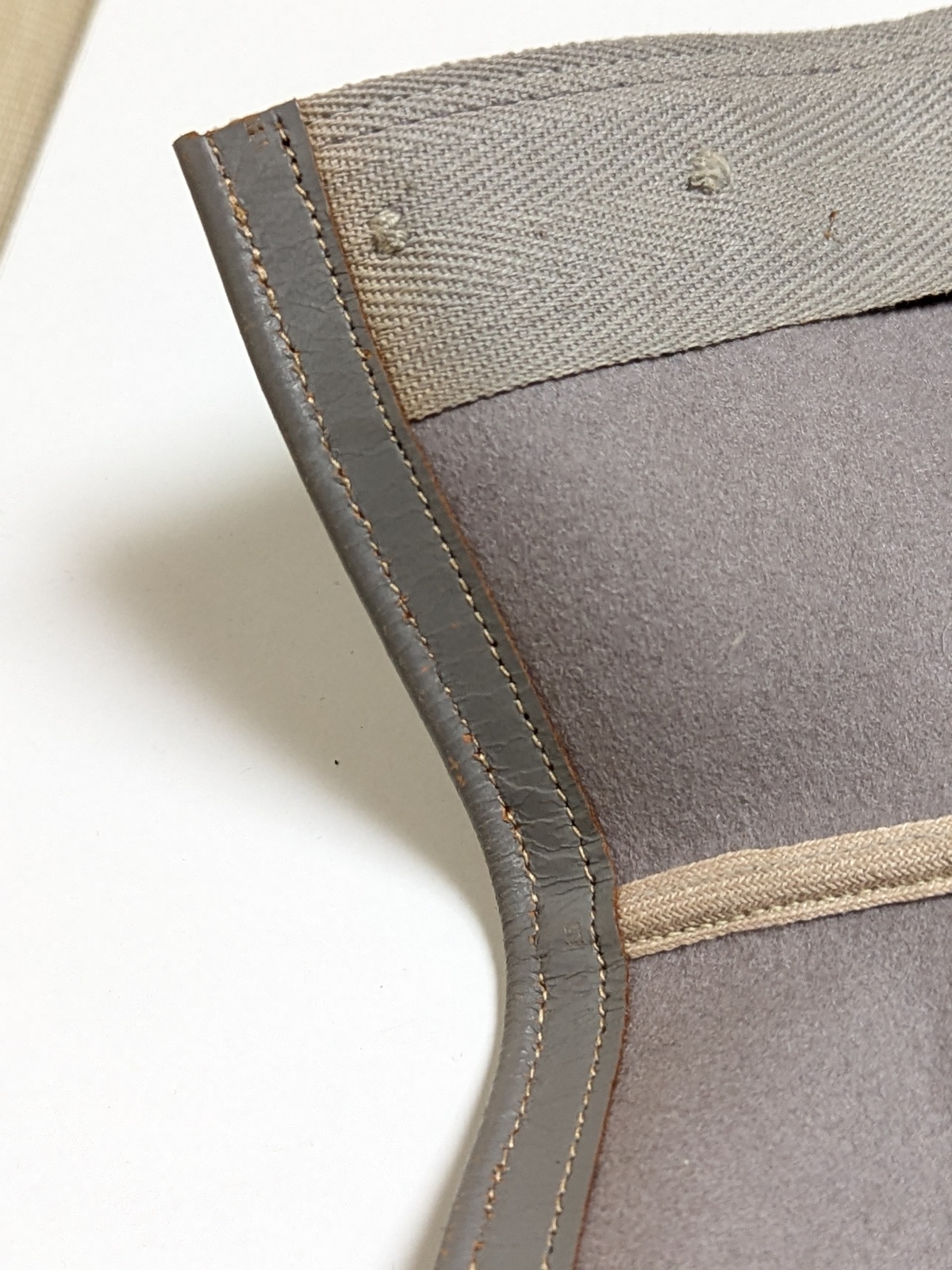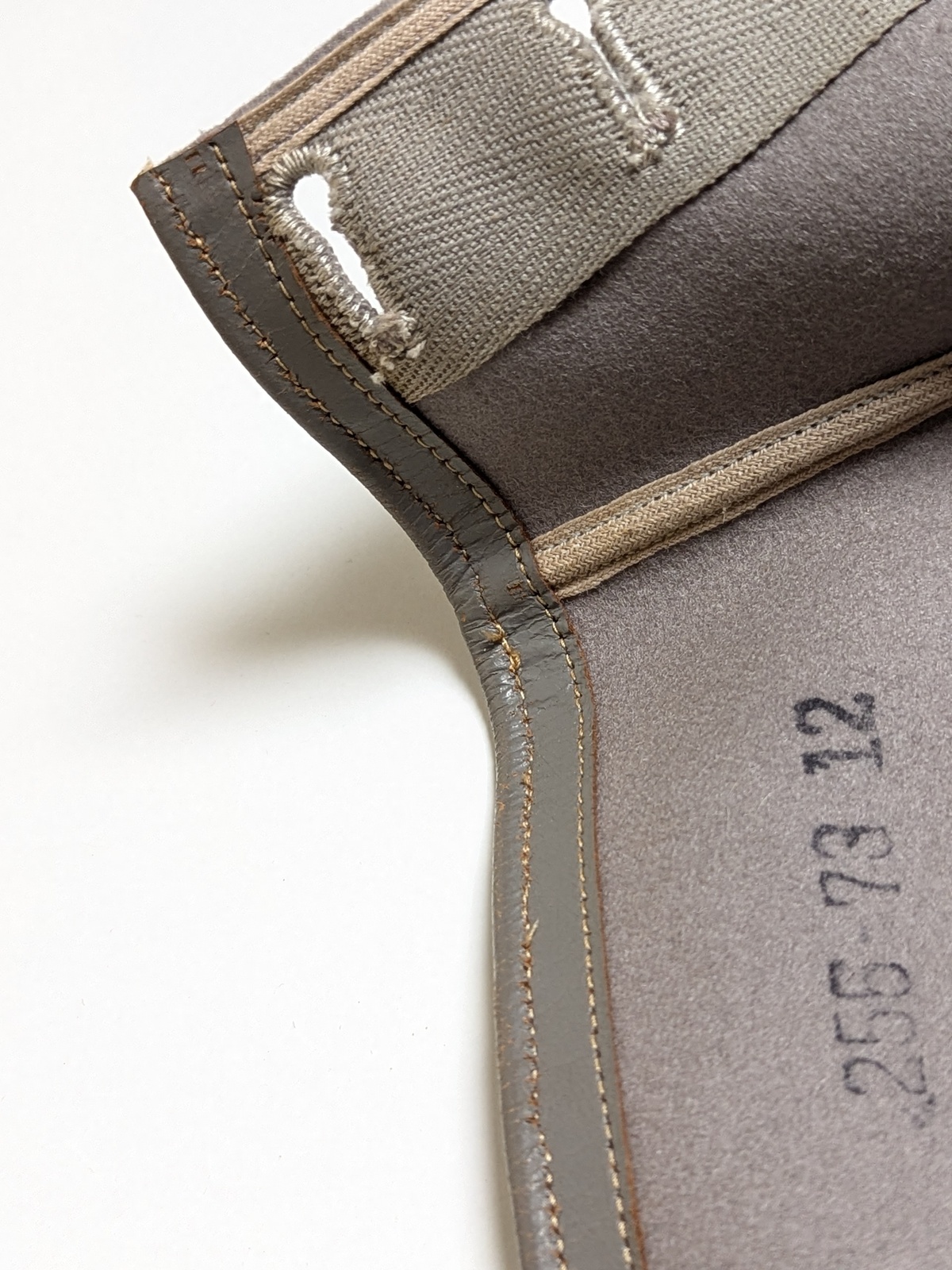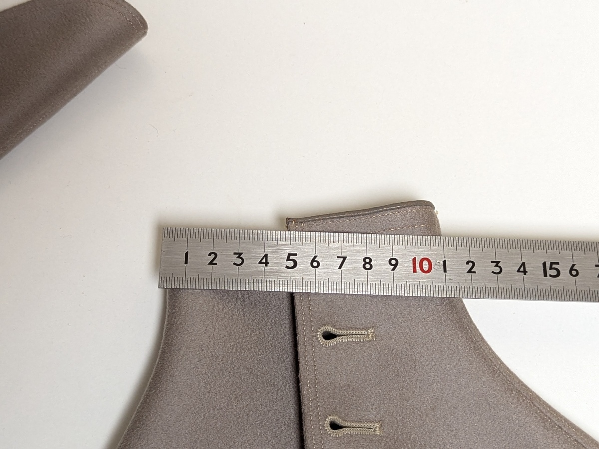 雰囲気のある練ボタン、ボックスと呼ばれるフェルトに似たウールはツヤがしっかりとしていて高級感があります。ミシンステッチも細やかで糸の質感もナチュラルです。