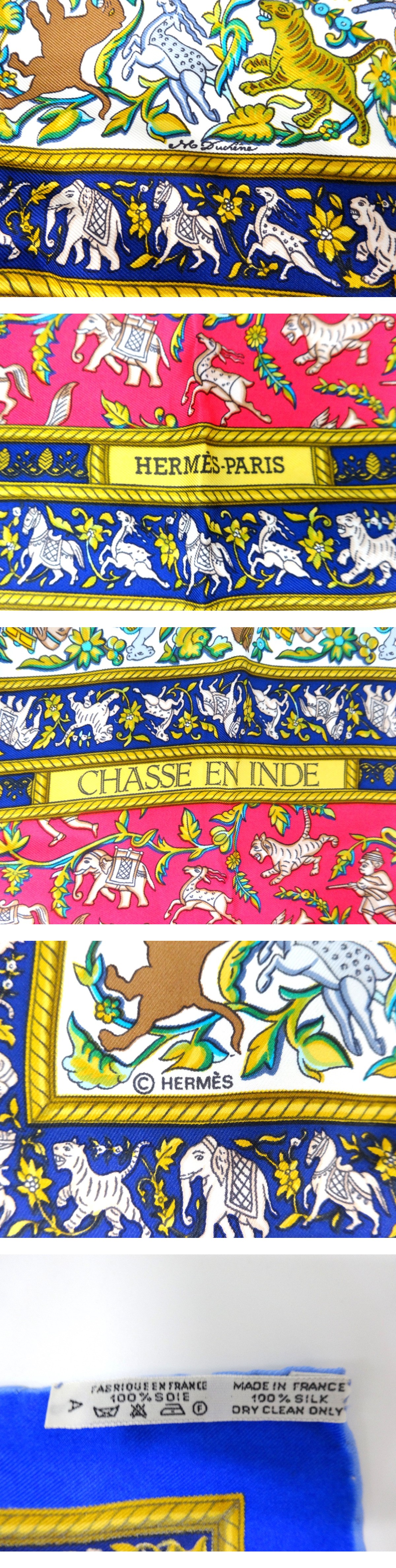 HERMES エルメス カレ90 CHASSE EN INDE インドの狩猟 スカーフ マルチカラー シルク100% 人 動物 ファッション 服飾小物 1円~ T0663