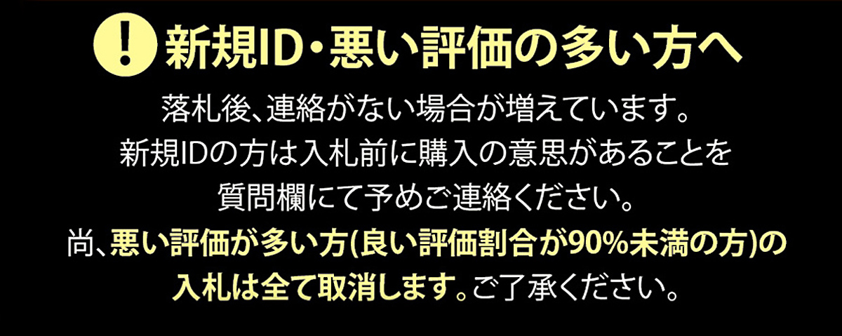 | その他 | ■質問回答・落札連絡が遅れる場合があります。 出来る限り迅速に対応出来る様心掛けておりますが、ご了承お願い致します。 ■返品・クレームは対応できかねます。 わかる範囲での質問にはお答えしますので、疑問を感じた点は事前にご質問ください。 ■携帯でご覧の方は、PC版の画面に大きな写真を掲載していますので 是非そちらもご確認ください。 ■悪い評価が多い方は、途中で入札を取り消す場合がありますのでご了承ください。 |