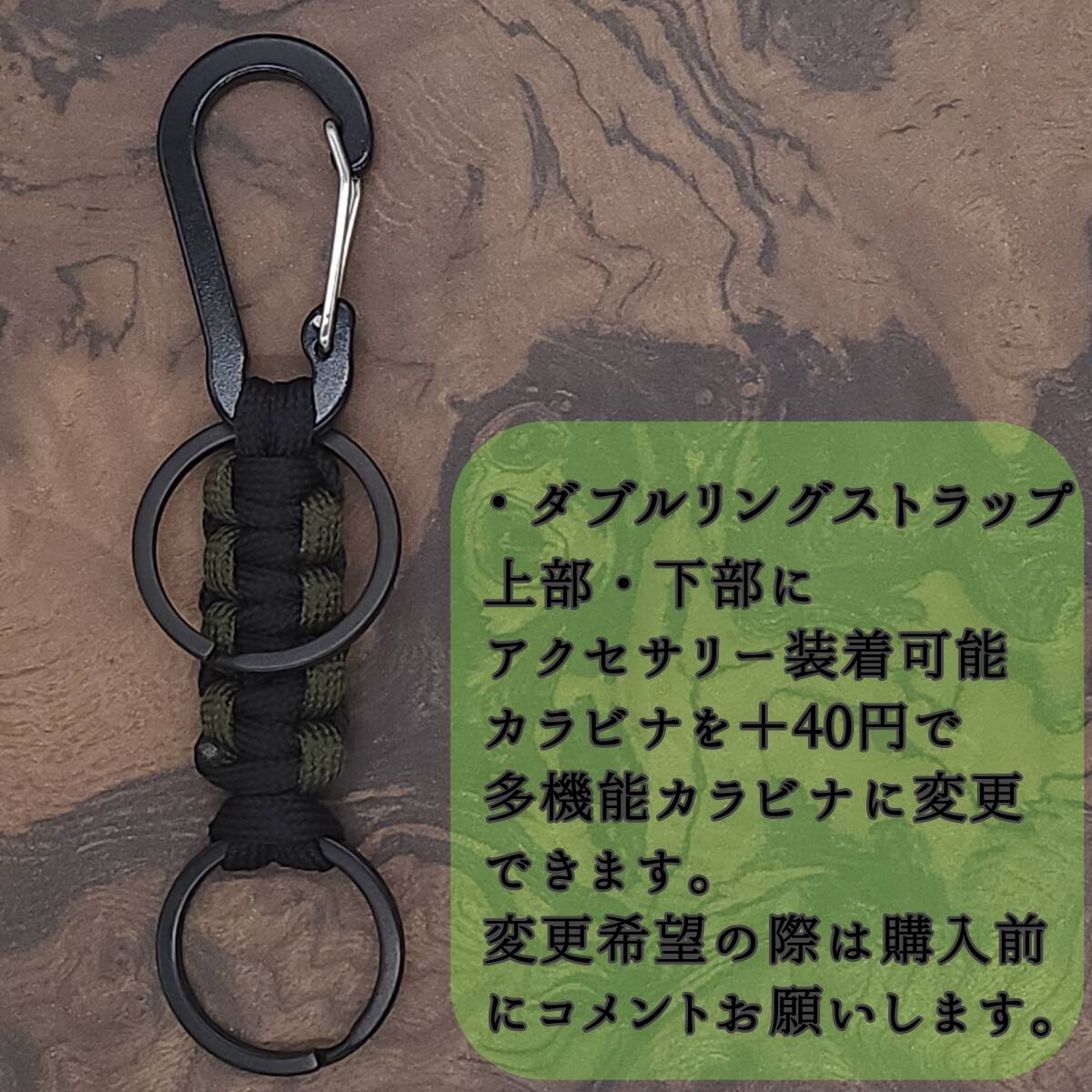 パラコードストラップのカラーは②番(ブラック&カーキ)で準備致します