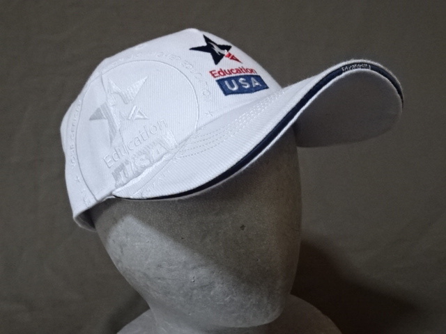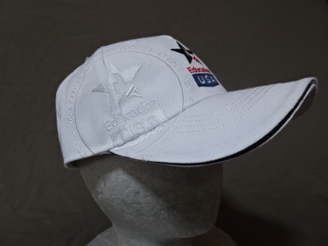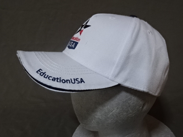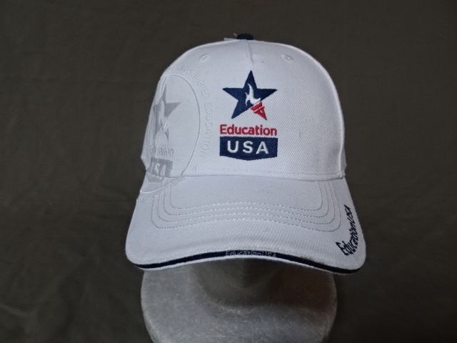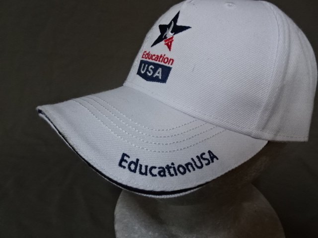 激レア USA購入 アメリカ政府機関 アメリカ留学サポート団体 【educationUSA】 ロゴ刺繍入り キャップ ホワイト 未使用
