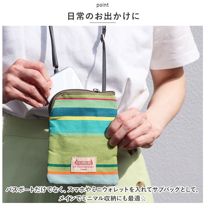 商品説明 | ・・フランス政府認定!老舗メーカーが紡ぐストライプの生地を使った「LES TOILES DU SOLEIL パスポートケース」が登場。 ・【レ・トワール・デュ・ソレイユ】 ・160年を超える歴史を持つテキスタイルメーカーが発信しているブランド。伝統的な製法を用いて紡がれた、カラフルでフランスらしい配色のストライプの生地が特徴的! ・独自の特徴を持つストライプ生地が、フランス政府より重要文化財に認定。 ・【海外旅行のおともに】 ・パスポートが丁度よく入るサイズ感♪首掛けや斜め掛けができるストラップ付きで盗難対策も◎ ・【日常のお出かけに】 ・パスポートだけでなく、スマホやミニウォレットを入れてサブバッグとして、メインでミニマル収納にも最適☆ ・【アウトポケット付き】 ・チケットやICカードの収納に便利なポケットを背面に搭載。 ・【撥水加工】 ・パラフィン加工が施されており防水・防汚性あり!汚れたり多少の雨ならサッと拭き取るだけでお手入れ楽チン。 ・【こだわりのデザイン】 ・前面と背面の配色や、ラインの太さを微妙に変えたデザインが魅力的。フロントのロゴパッチがナチュラル感をプラス。 ・フランスのエスプリを身近に感じる、おしゃれなカラーバリエーション。 ・【ポケット仕様】 ・背面・・・オープンポケット×1 |