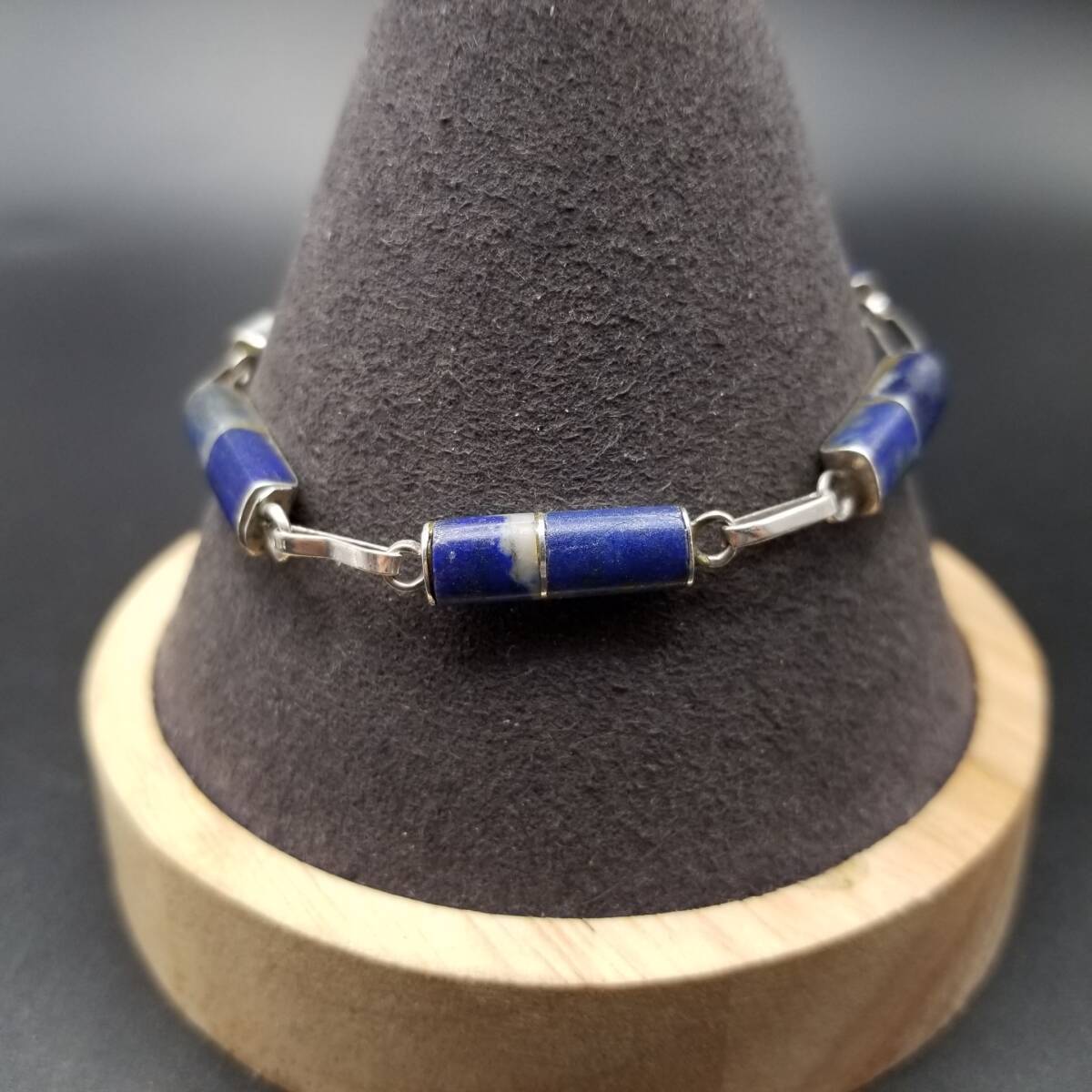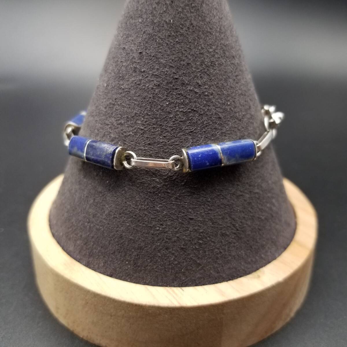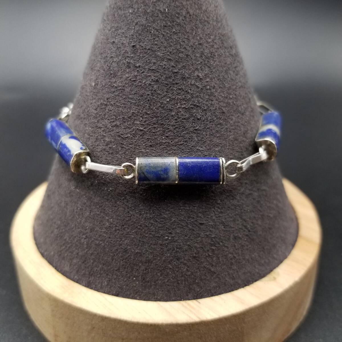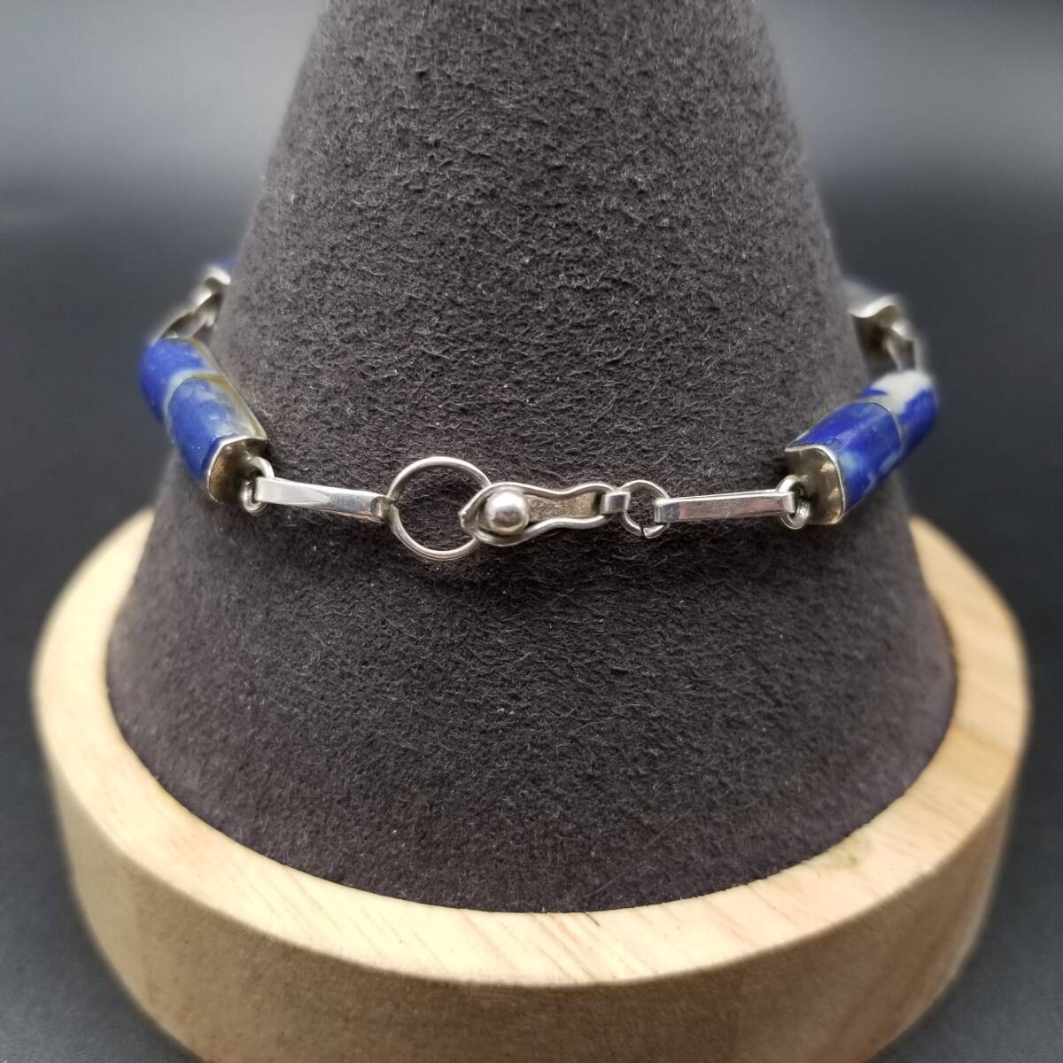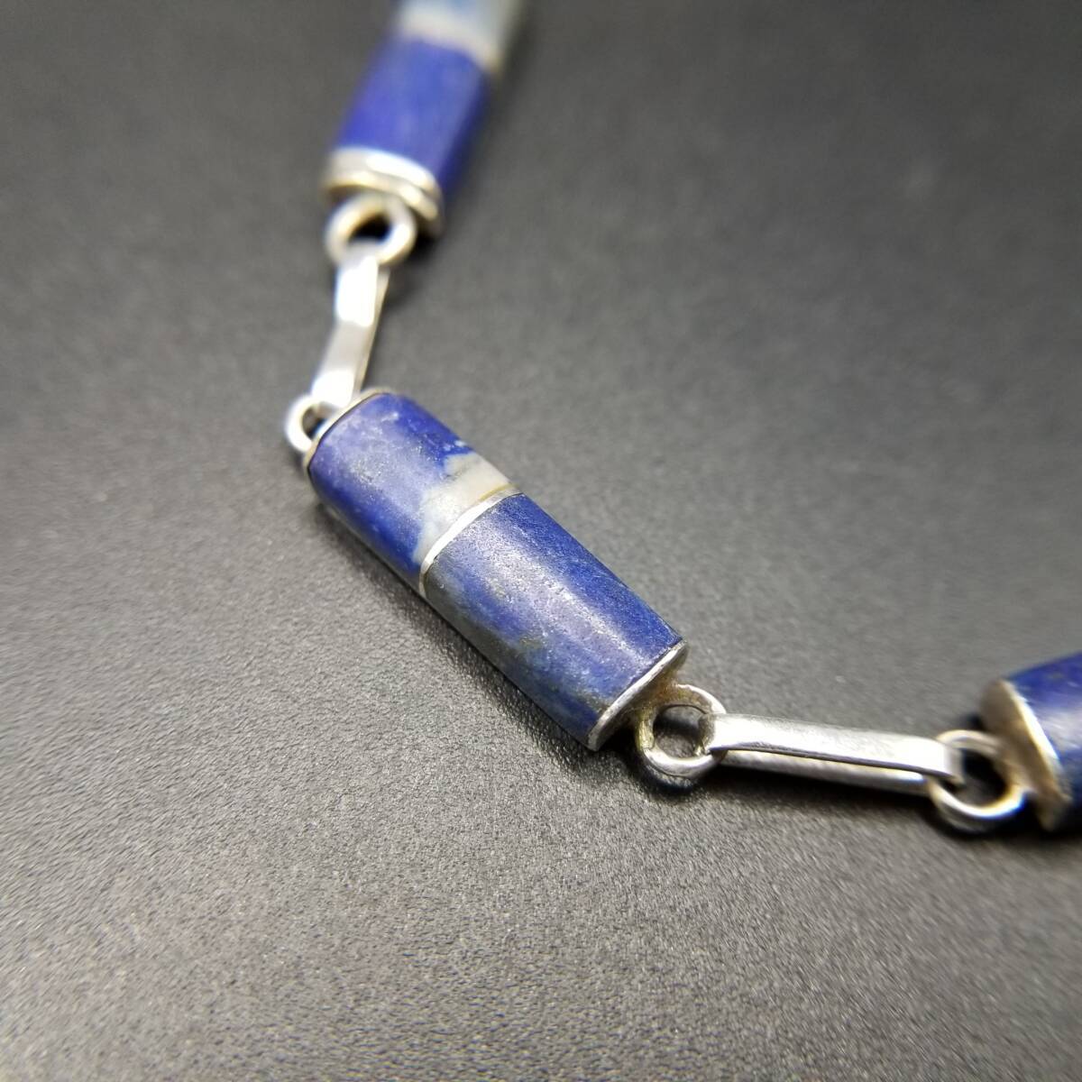 ラピスラズリ バーチェーン シンプル 950 シルバー ヴィンテージ ブレスレット 銀 華奢 上品な存在感 Y22-W