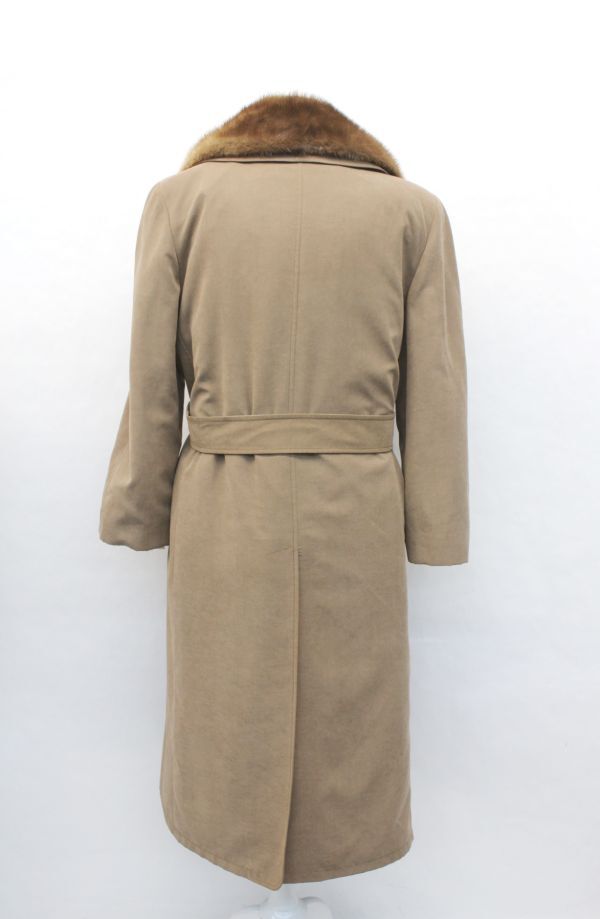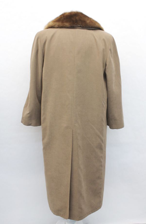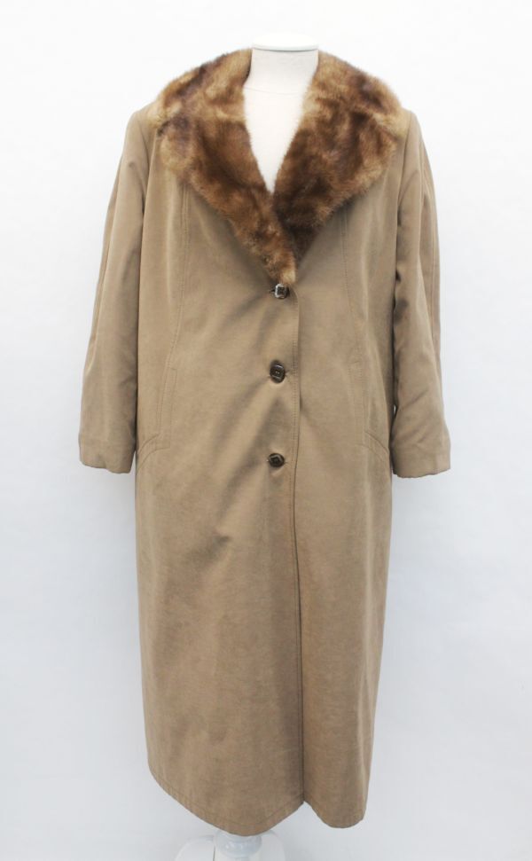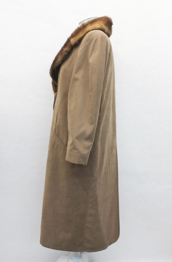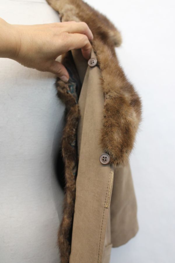 デミバフ・ミンク毛皮ファー・ライナーつき ブラウン 布地コート アメリカンサイズ4-6