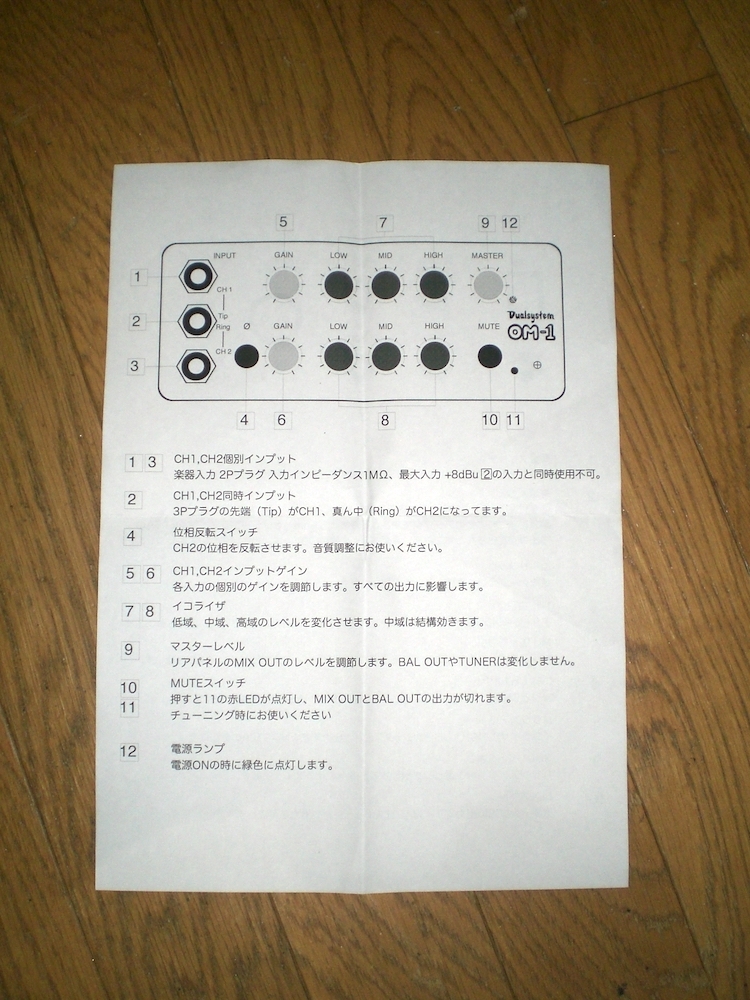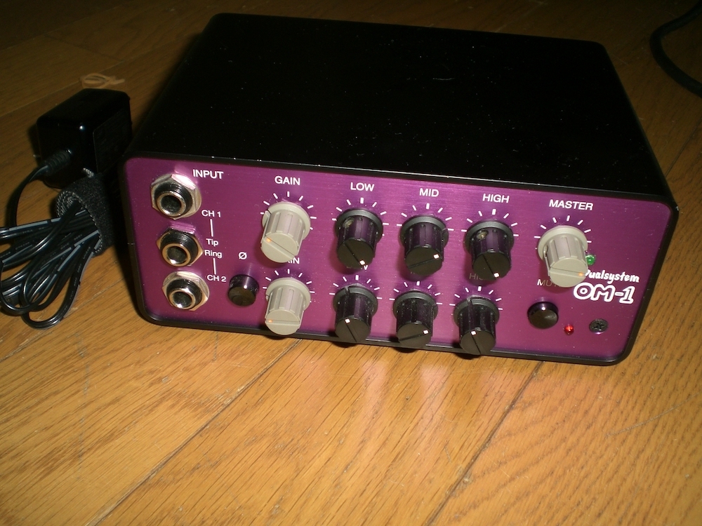 Dualsystem OM-1。アコギ用ステレオプリアンプD.I.。ステレオケーブルを使用してマイクとピエゾのミックスアウトが可能。ACアダプター有り。取り扱い説明書あり。日本製。10年ほど前に新品で購入。中古。送料無料