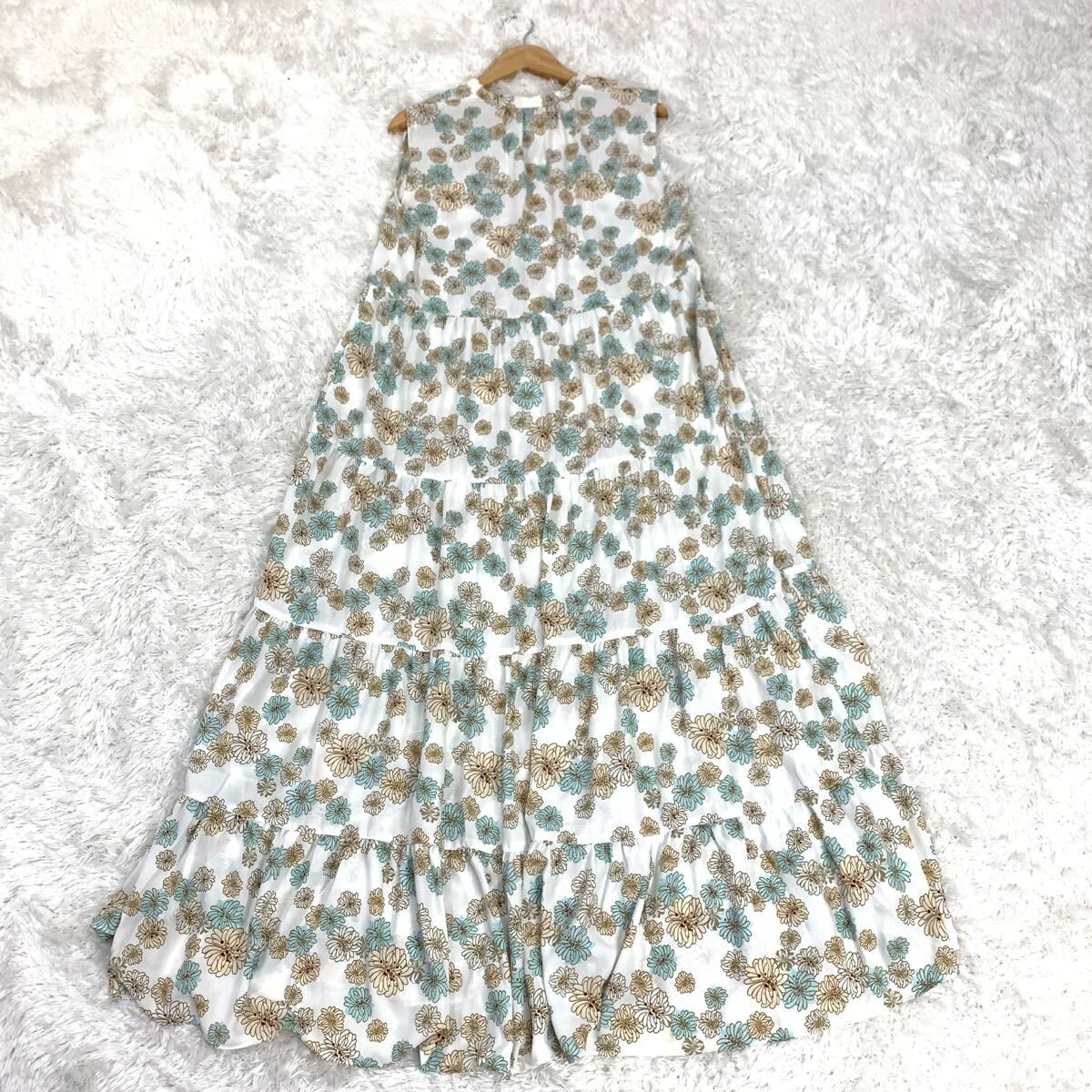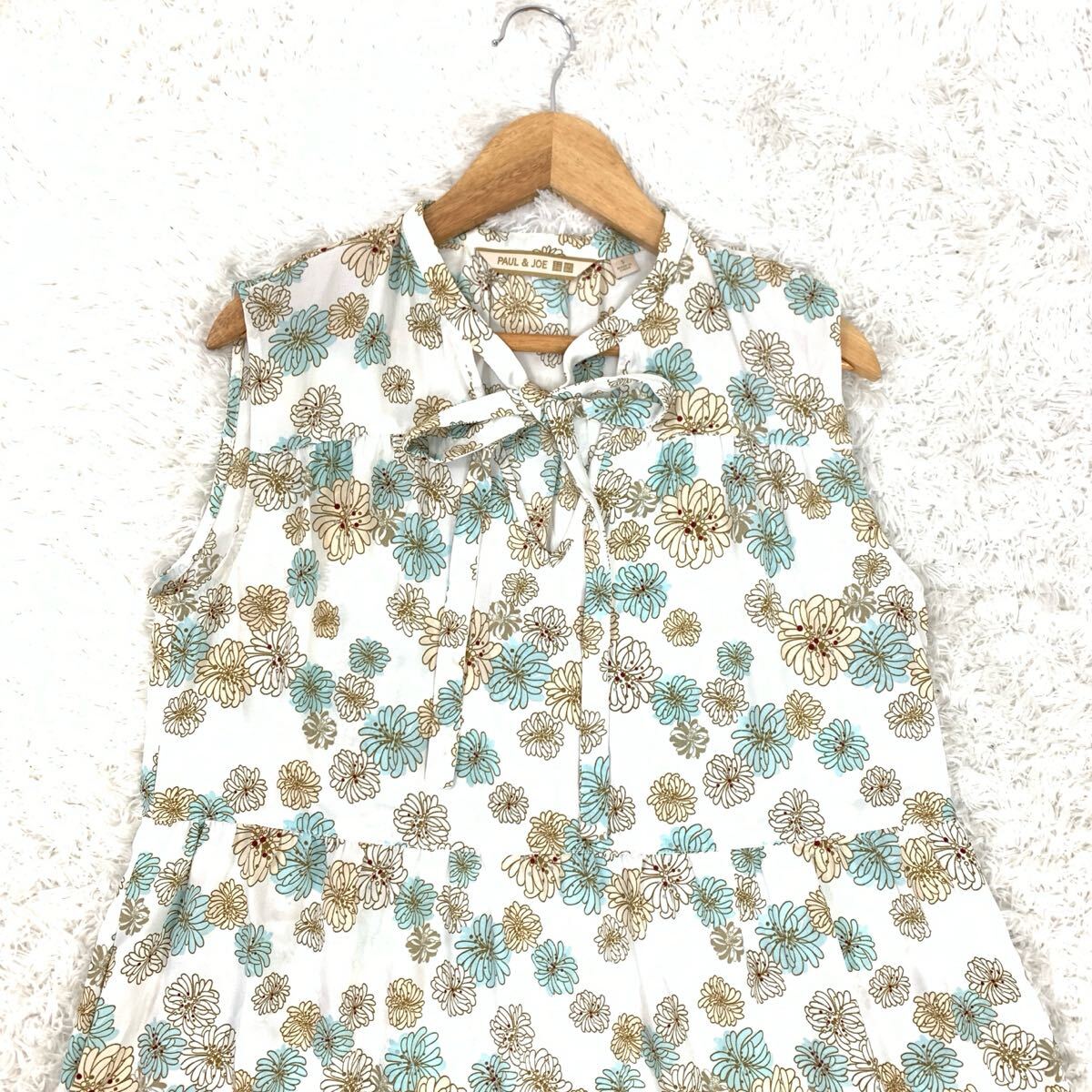UNIQLO PAUL&JOE ユニクロ ポールアンドジョー ノースリーブワンピース ロングワンピース 花柄 ホワイト ブルー系 ポリエステル S YA9323