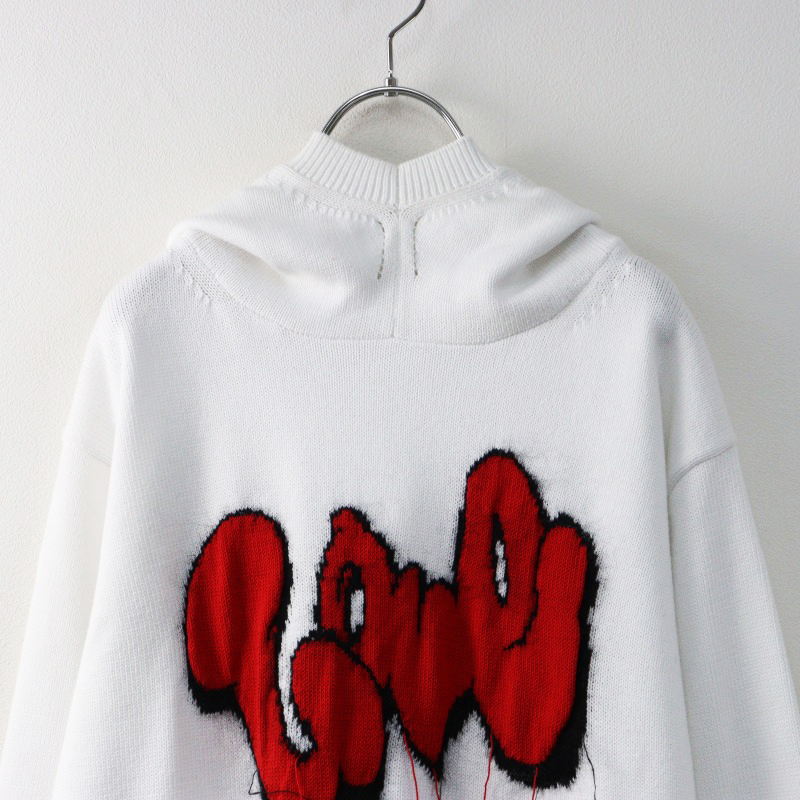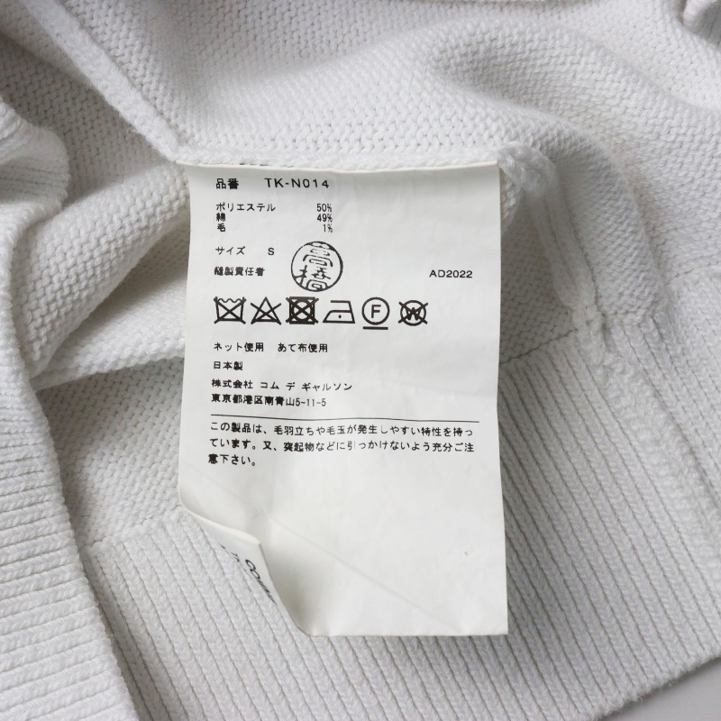 2023SS タオコムデギャルソン tao COMME des GARCONS Shun Sudo 綿エステル天竺インターシャニット S/ホワイト LOVE【2400014411249】