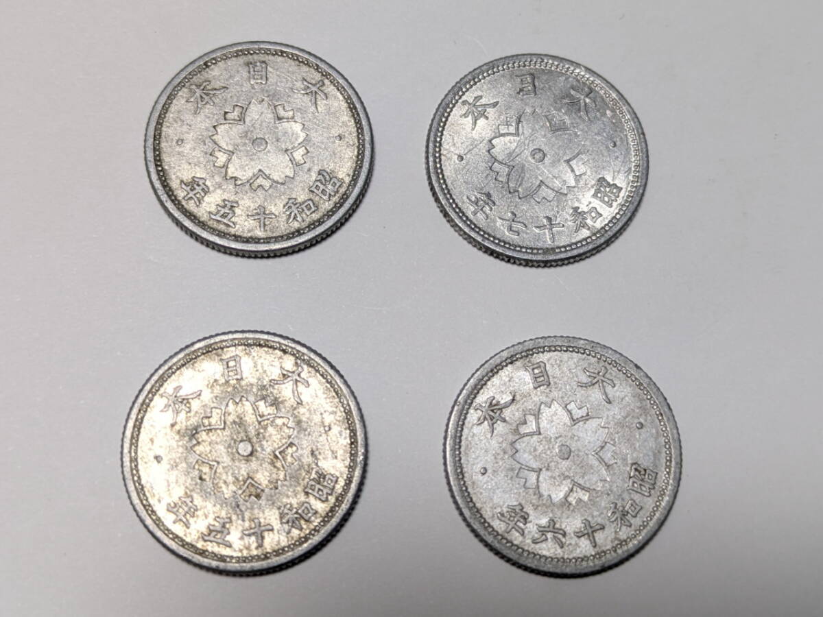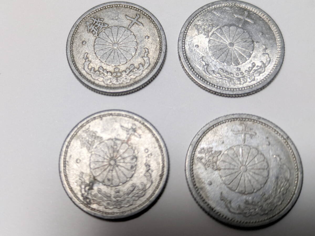 菊十銭アルミ貨 10銭 昭和15年 昭和16年 昭和17年 アンティーク 4枚セット 管理50