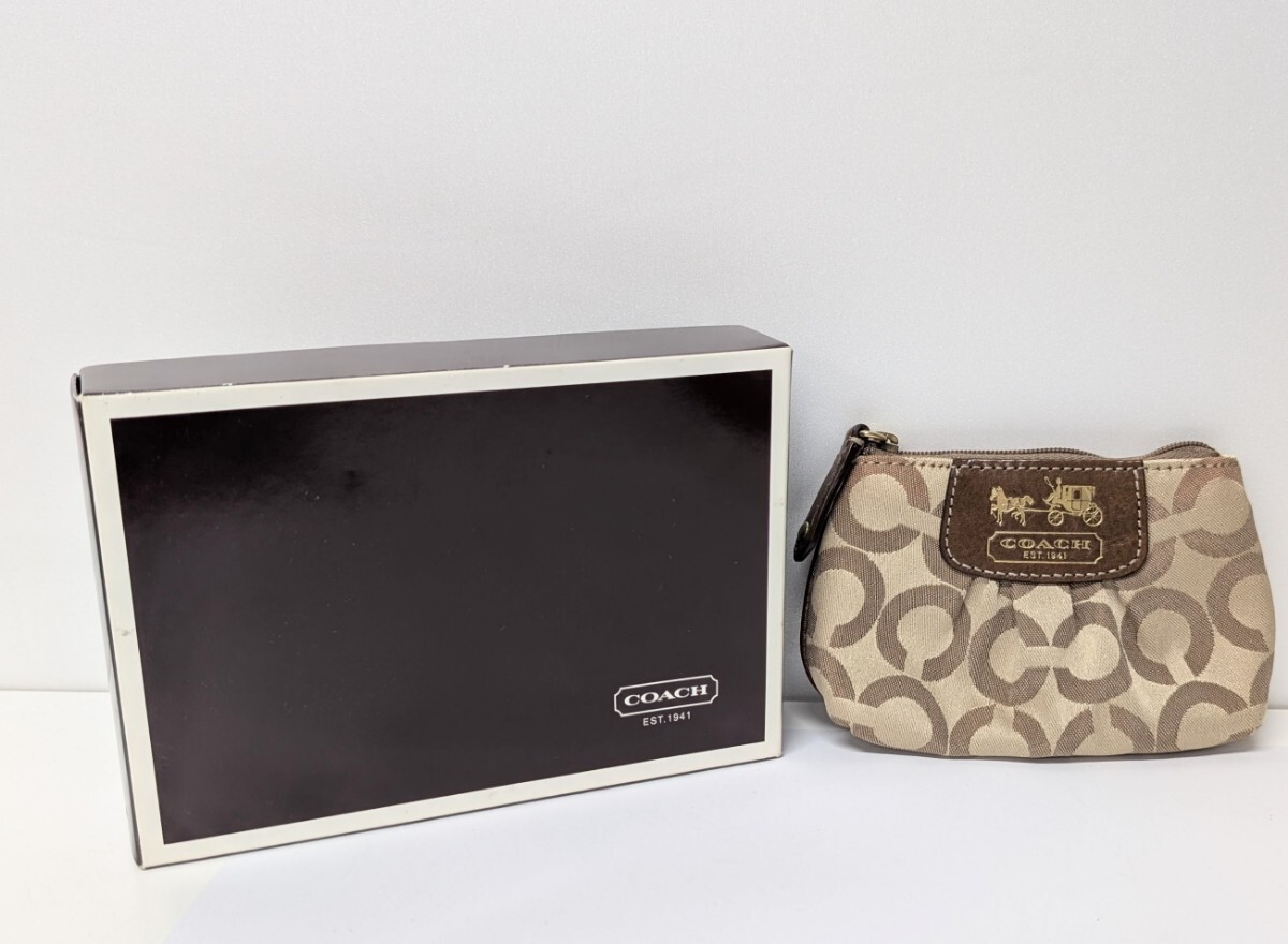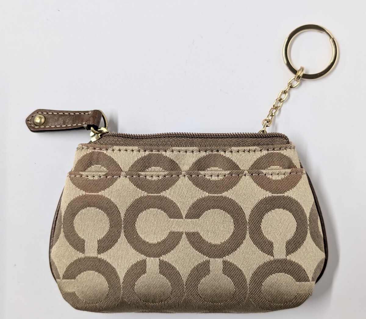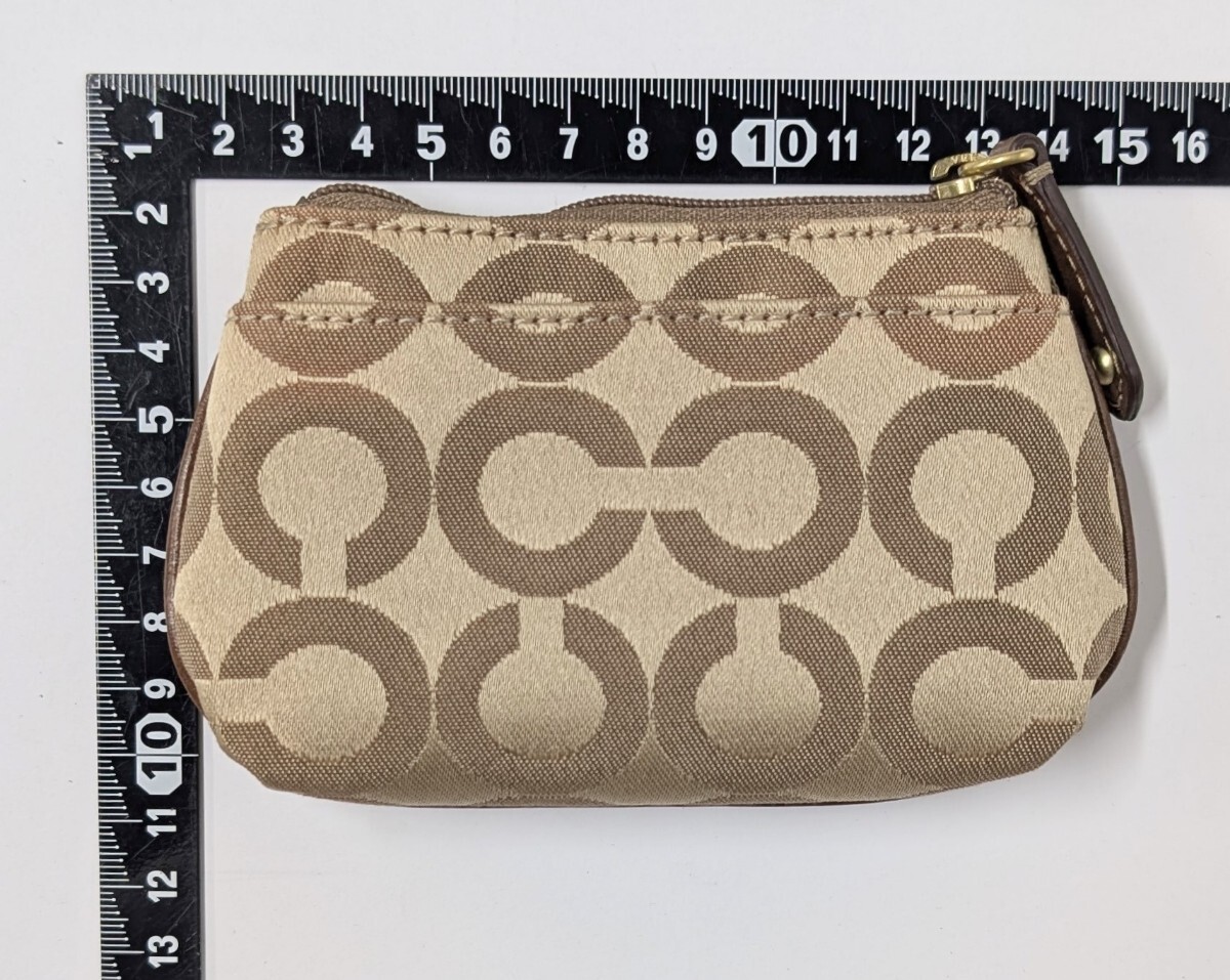 COACH/コーチ マディソン オプアート ミニスキニー 41981 ベージュ ブラウン サテンキャンバス レザー キーリング付