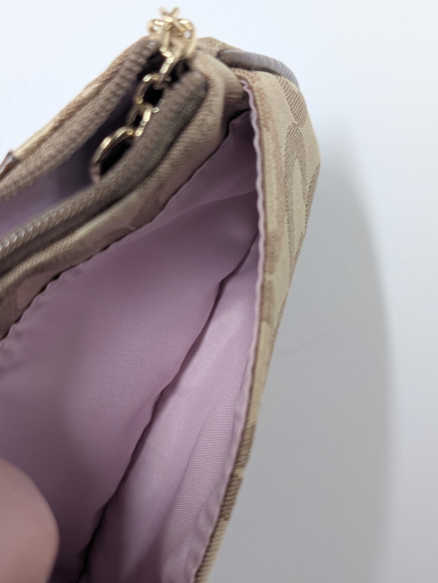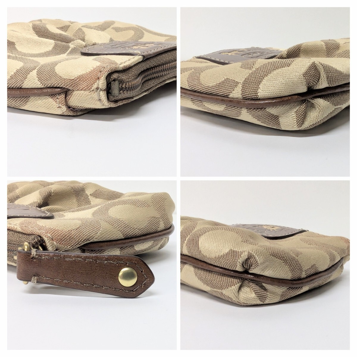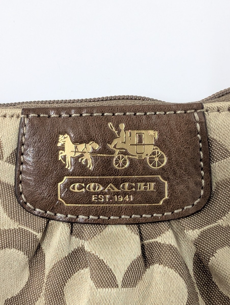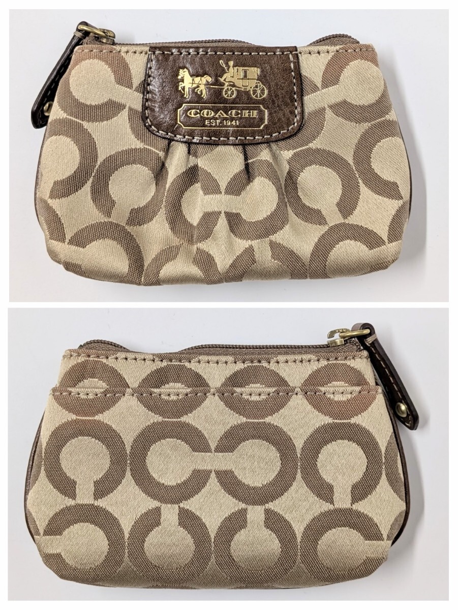 COACH/コーチ マディソン オプアート ミニスキニー 41981 ベージュ ブラウン サテンキャンバス レザー キーリング付
