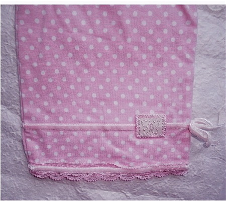 お色はベビーピンクに白のポルカドット。