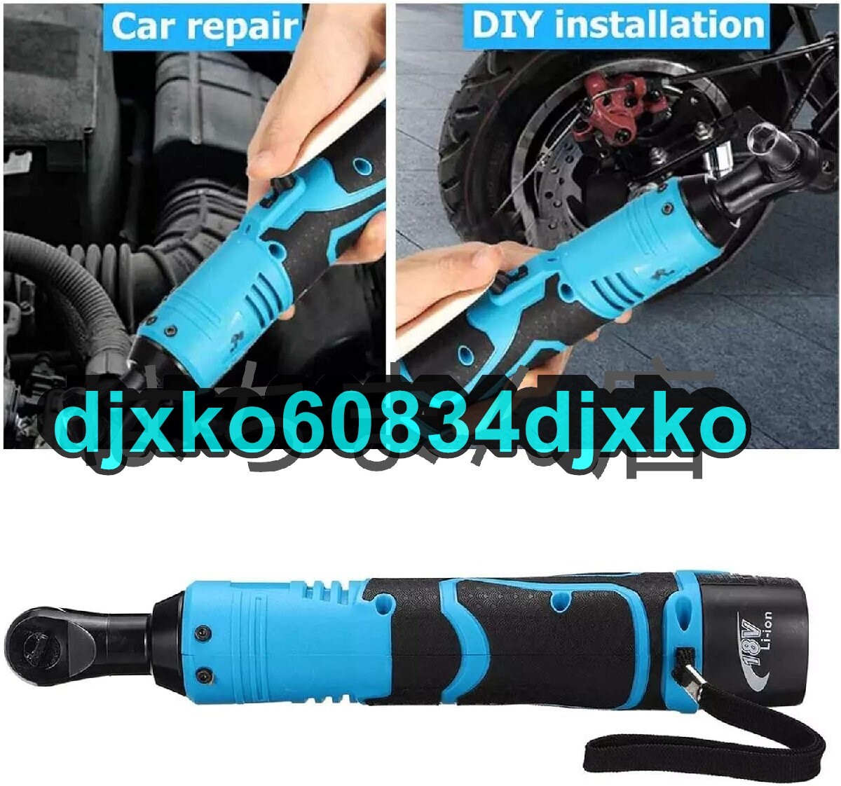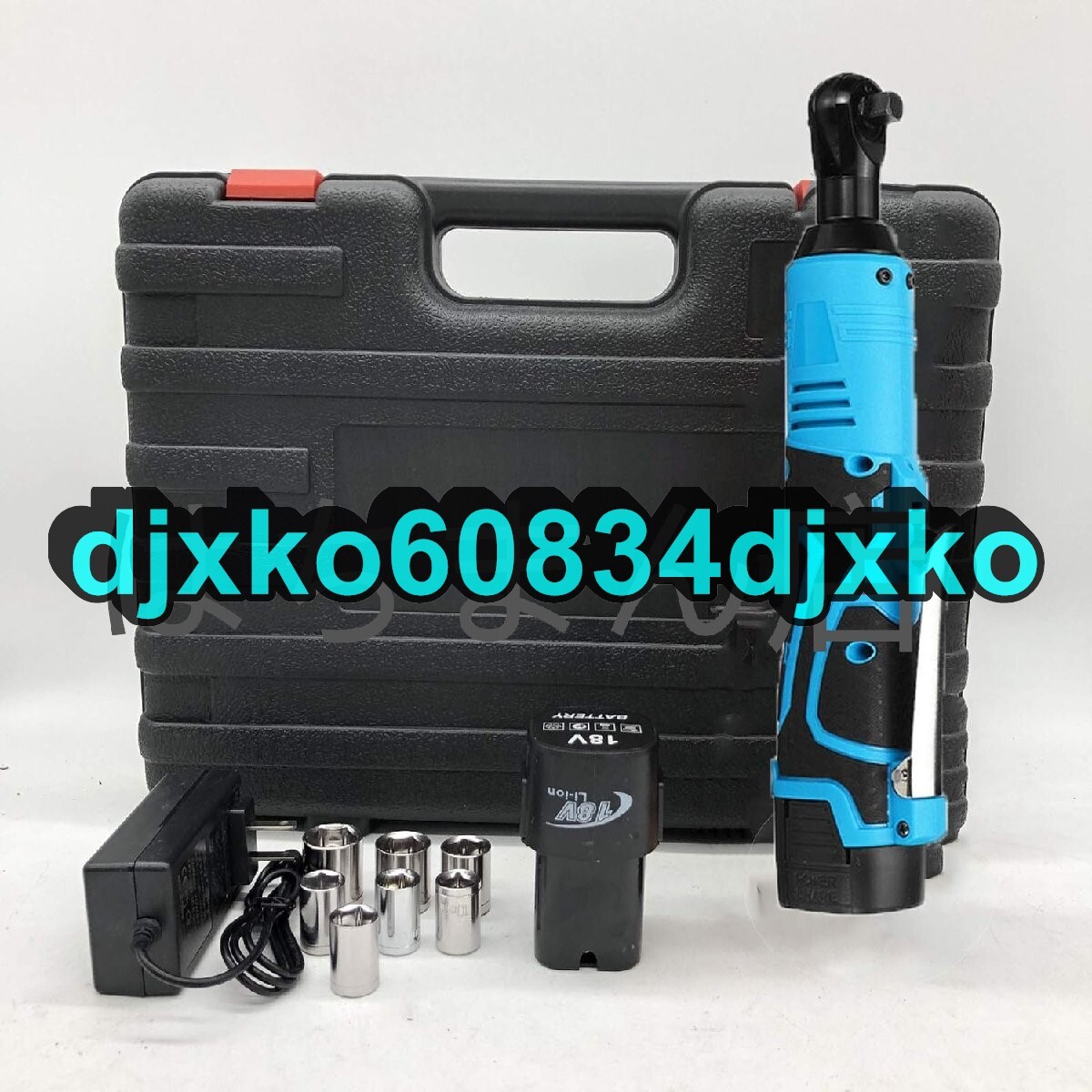 3/8充電式コードレスラチェットレンチ、18V 電動工具セット、2リチウムイオン電池、7ソケット、LEDワーキングライトデザイン