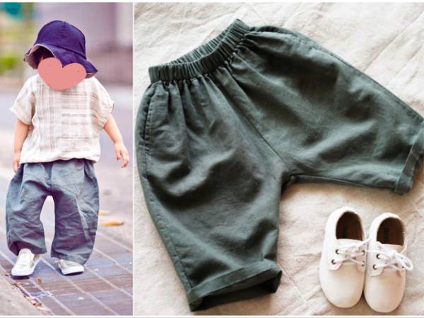 千歳緑/カーキ★キッズ服/子ども服【麻】ふわふわパンツ/サルエルパンツ/ズボン ●男女兼用● 110cm