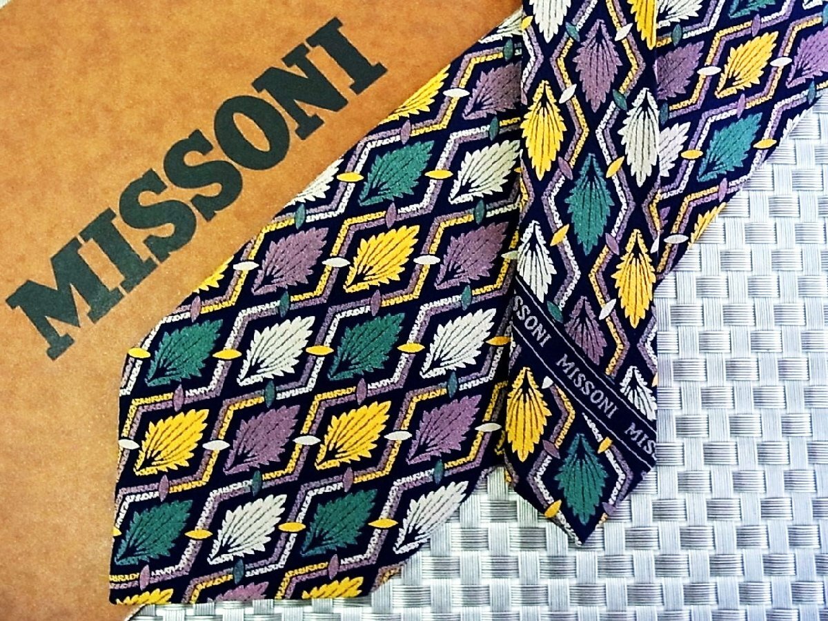 ★RB3942★【葉っぱ 植物 菱形 柄】ミッソーニ【美品】ネクタイ