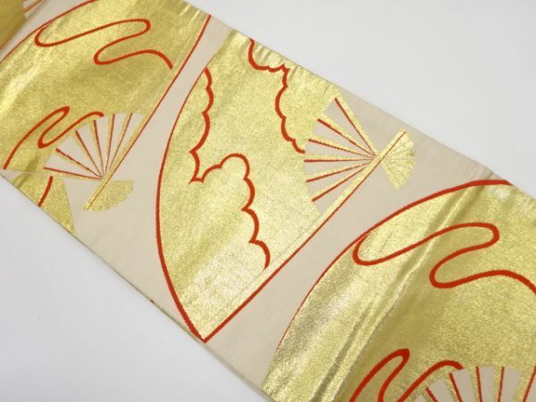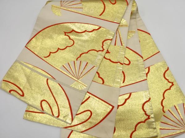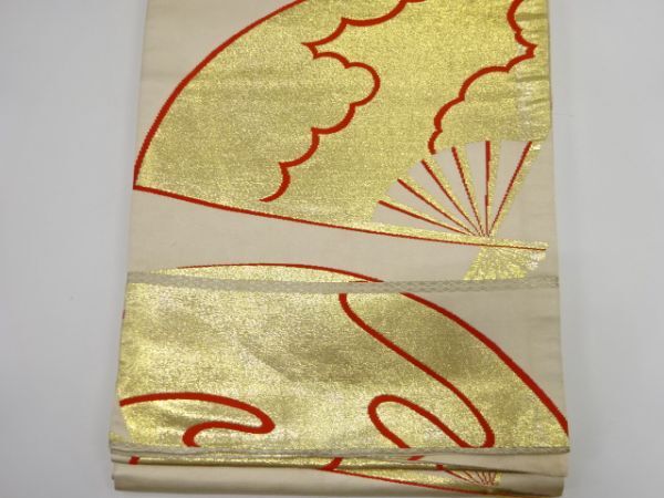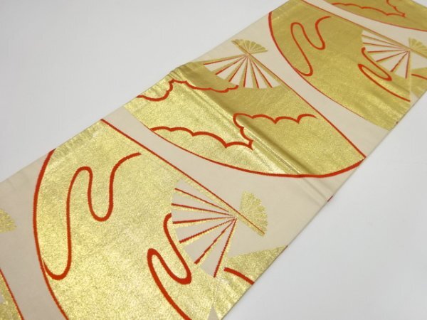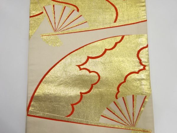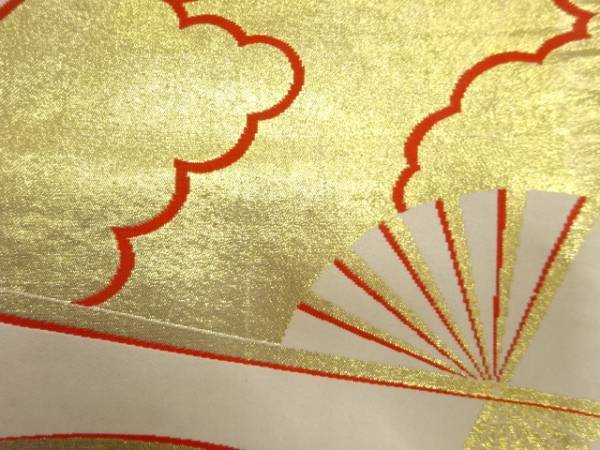 ys7390912; 扇面に霞・雲模様織り出し丸帯(材料)【アンティーク】【着】