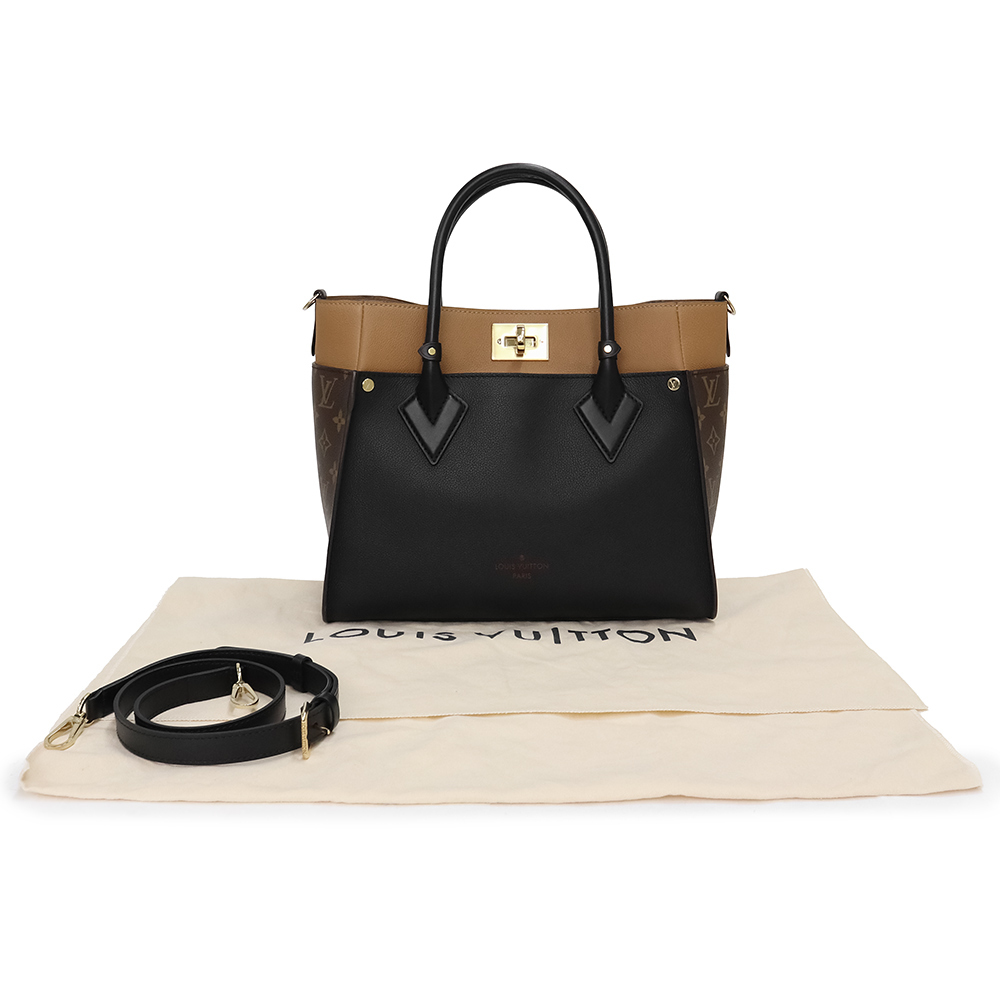 グレインカーフレザーとメゾンならではのモノグラム・キャンバスを組み合わせたエレガントな「オンマイサイド MM」。毎日の必需品がすべて入る大容量のアイテムは、調節可能なストラップで実用的なクロスボディバッグとしてもお使いいただけます。