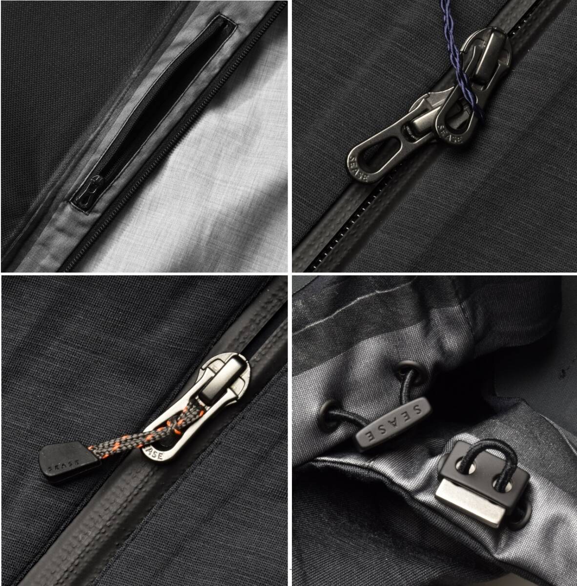 各ジップはエレメント(噛み合わせ部分)にラバーコーティングを施した『止水ジップの防水仕様』、