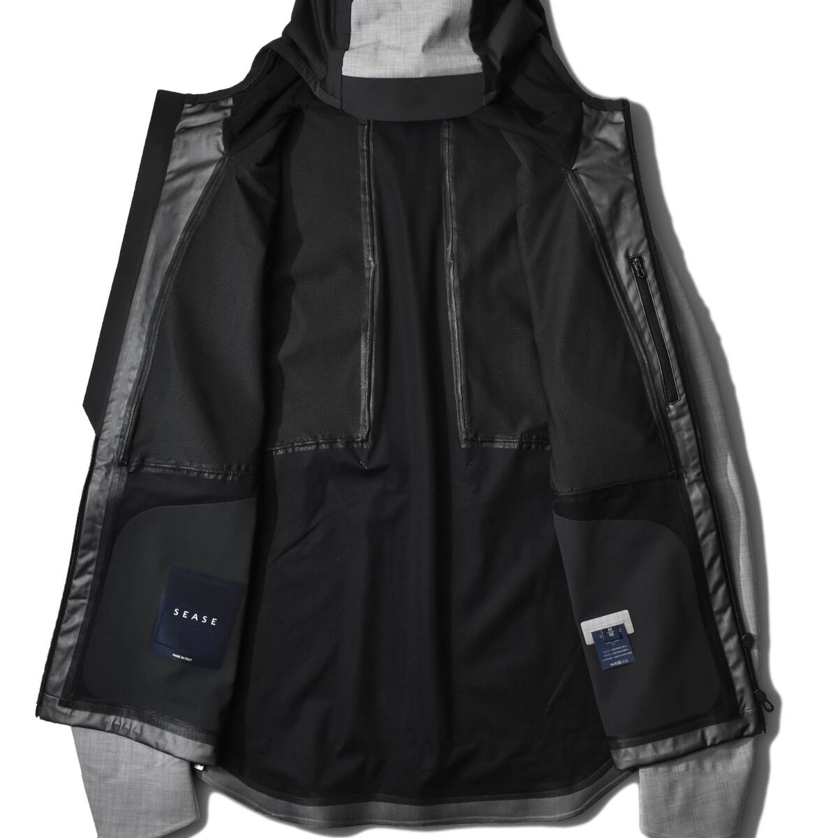 ライニングの縫い代には止水テープを貼った『完全防水仕様』、防水性を高めると同時に