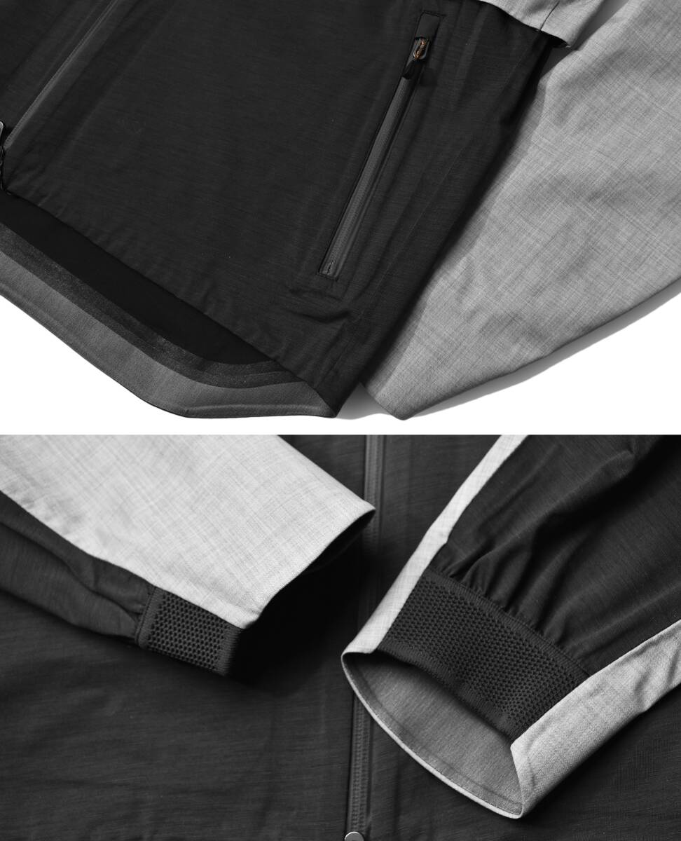 袖にもダークグレーの切り替えが施されており、ストレッチ素材のおかげで腕の動かしもスムーズ。