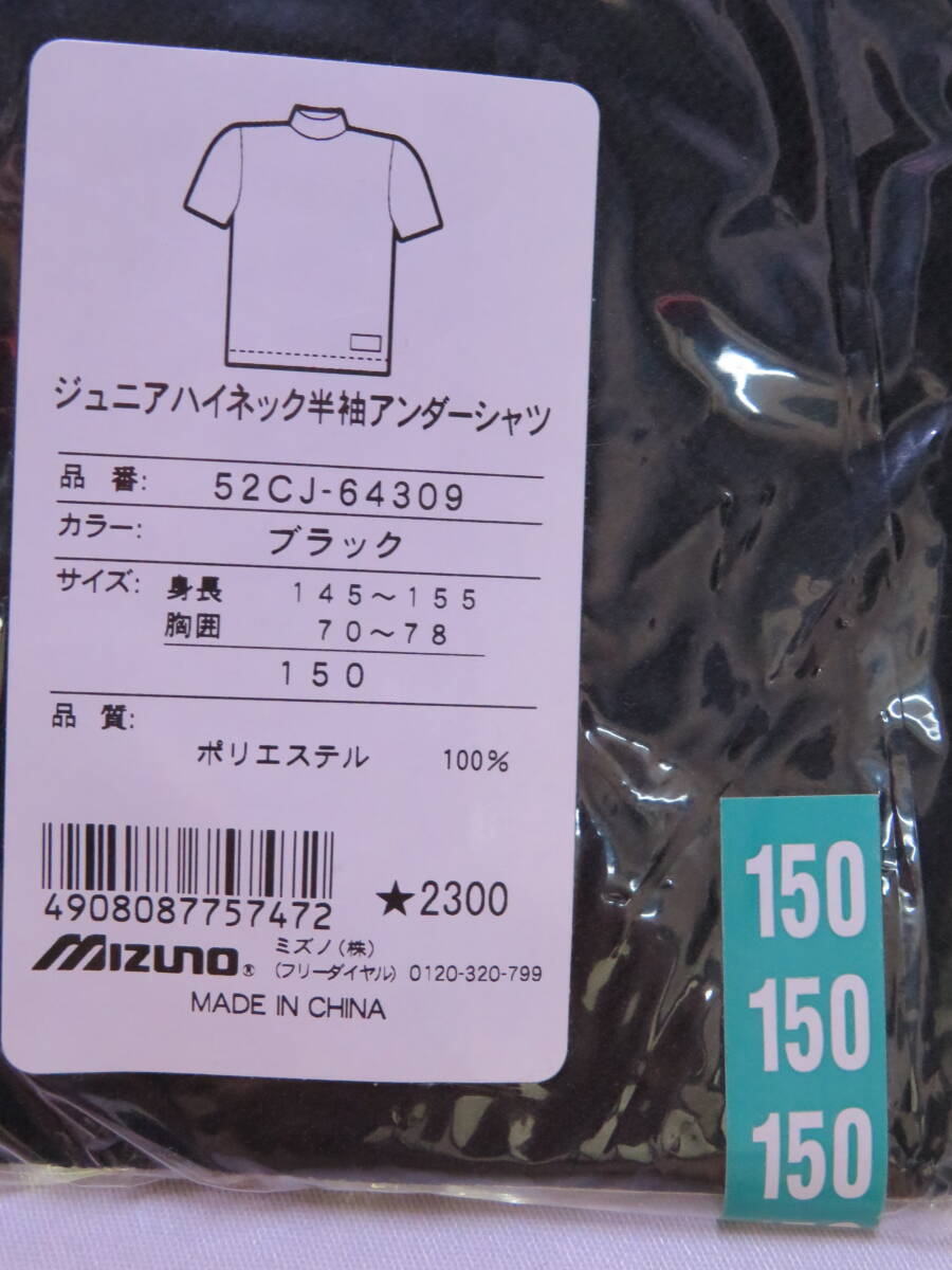 149 ミズノ JR用半袖ハイネックアンダーシャツ黒150