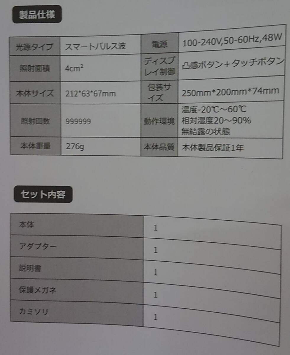 ・通電、モード切替の確認はできています。肌に当てての操作は行っておりません。 【欠品】※画像にある物が全てです。 保護メガネ・カミソリ・外箱 【状態】 ・本体モニター部分にスレがあります。 ・アダプターのコード部分が薄ピンクに変色しています。 ・保証書等は付いておりません。 ※状態は画像にてご確認ください。 ※中古品、現状にご理解いただける方の入札お願い致します。 当社の商品につきましては中古品(または中古扱い)のため 下記の注意事項を合わせてご確認ください。 ※委託品のため詳細が分からない商品もございます。 ※商品説明に明記しておりますが、使用感がある場合がございます。 ※委託品・長期保管品のため、新品・未開封品であっても微細なキズや汚れがある場合がございます。 ※家電は動作確認済みですが全ての機能の長時間動作確認はしておりません。 ※工具や調理器具の実際の作業、調理等での確認はしておりません。 ※商品の写真はなるべく実物に近いものを選んでいますが、PC環境により映り具合や色合いなど見え方が異なる場合もございます。 ※現状でのお渡しのため、商品の状態などの理由による返品、ご返金には応じかねますのでご了承ください。 ※商品が小さな部品、電池等を含む場合は誤飲防止のため、小さなお子様の手の届かないところでのご使用及び保管をお願いいたします。 気になることがありましたらお気軽にご質問ください。 | ||||||||