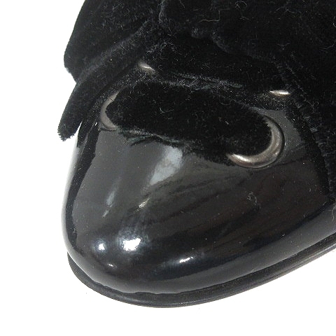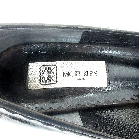エムケー ミッシェルクラン MK MICHEL KLEIN パンプス アーモンドトゥ スタックヒール エナメル リボン 23.5cm 黒 ブラック /MN レディース
