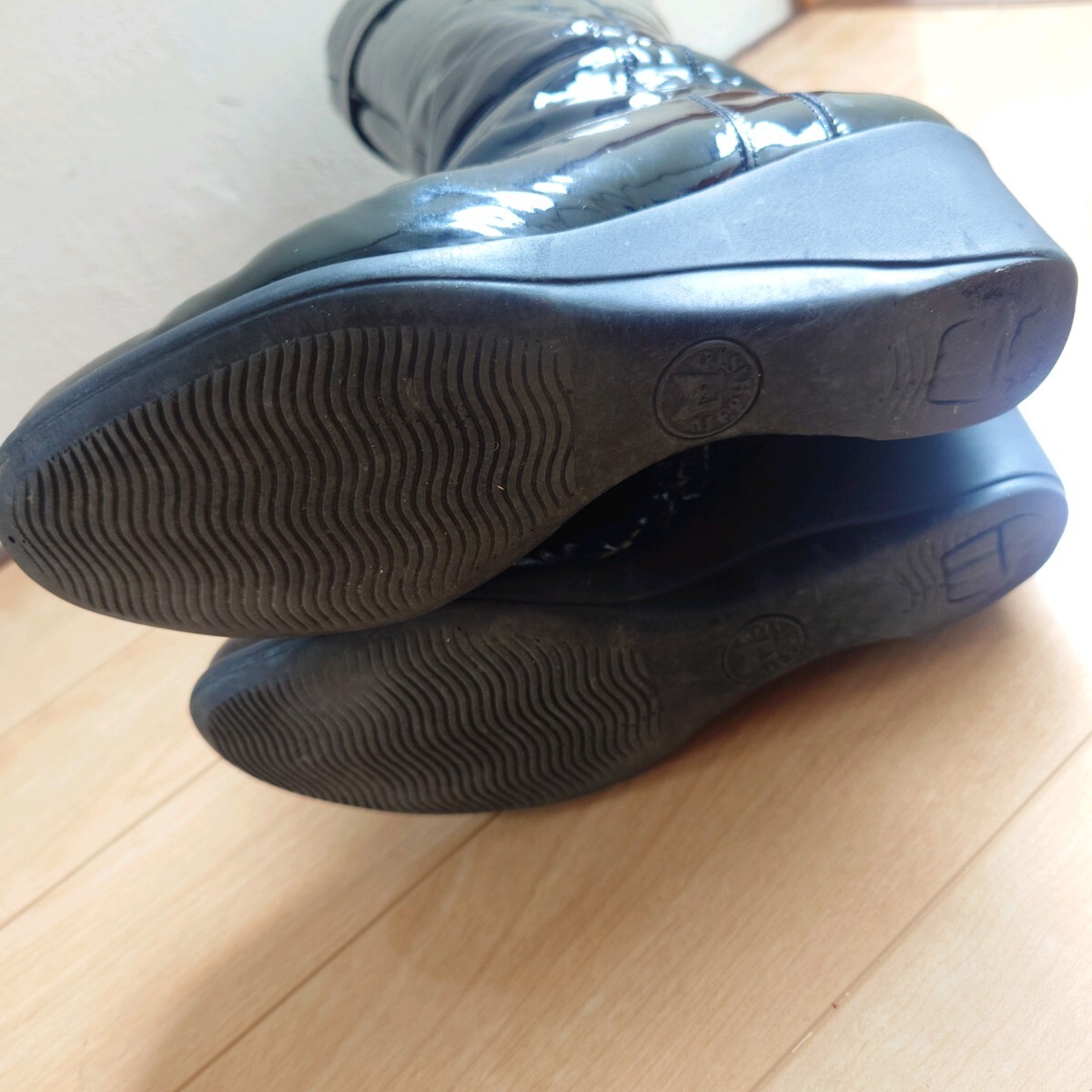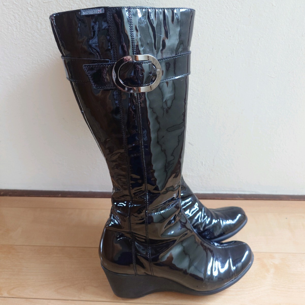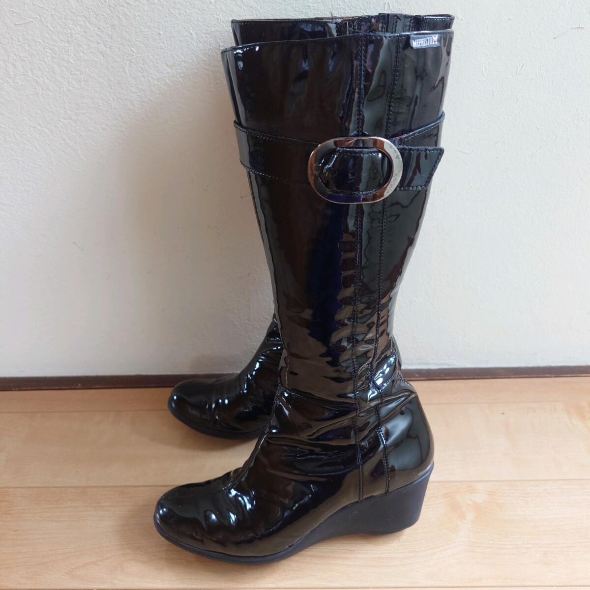 ☆MEPHISTO メフィスト フランス製 Made in FRANCE エナメル ロングブーツ 靴 23.5cm レディース ブラック 黒色