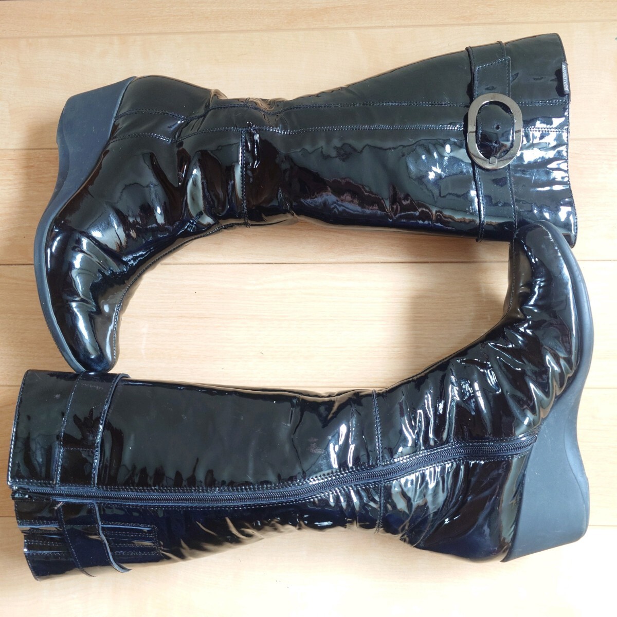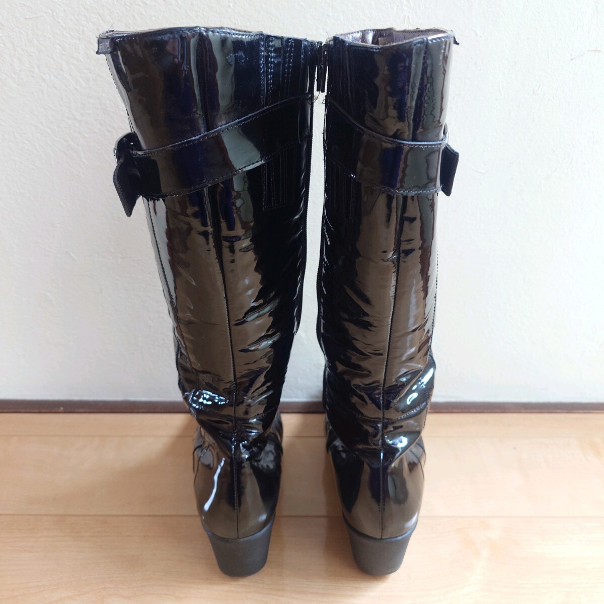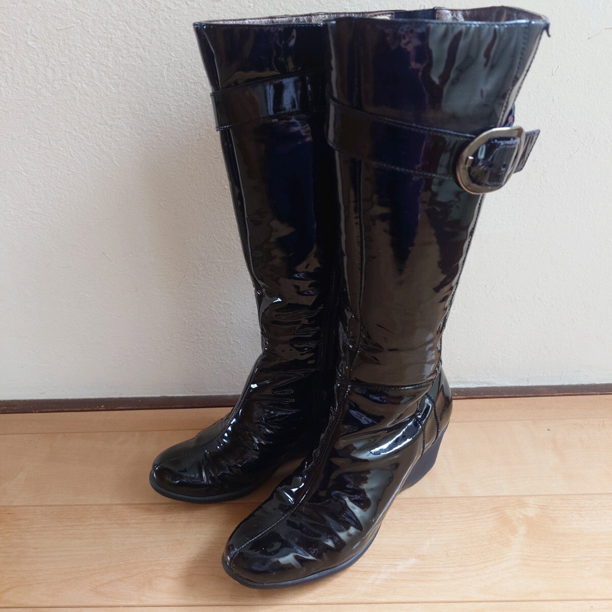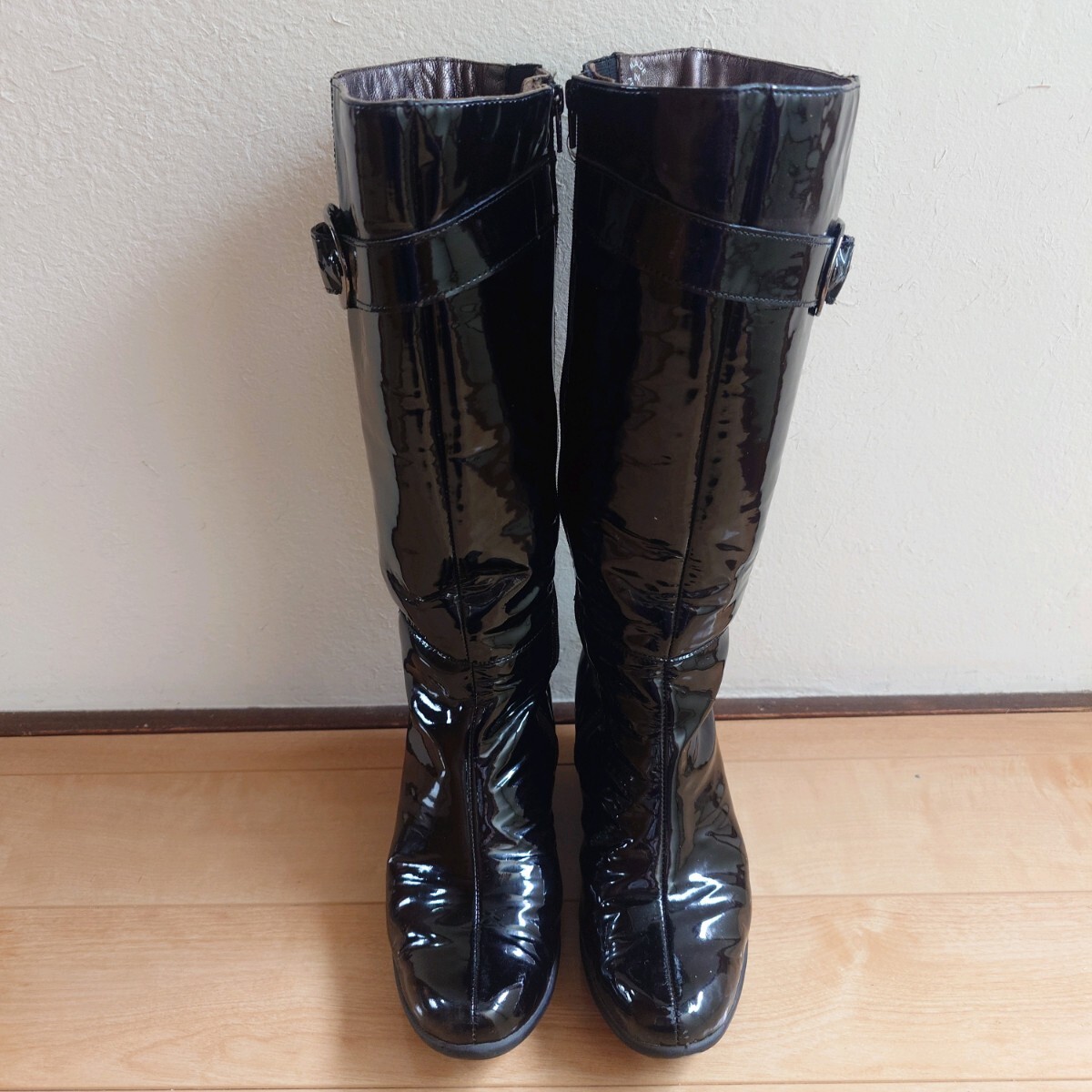 ☆MEPHISTO メフィスト フランス製 Made in FRANCE エナメル ロングブーツ 靴 23.5cm レディース ブラック 黒色