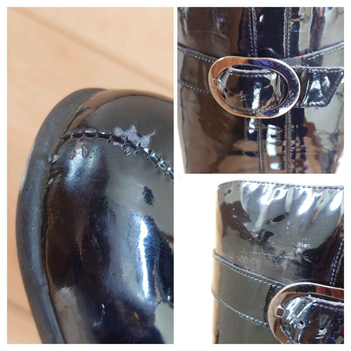☆全体的にベタつき感、つま先やベルト周辺に僅かなキズや光沢がなくなっている箇所などあり。多少ダメージはありますが、まだまだ問題なく、着用可能なコンディションかと思います。