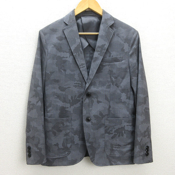 H■エディフィス/EDIFICE 迷彩/カモフラ 2Bテーラードジャケット【44】灰色/MENS■129【中古】