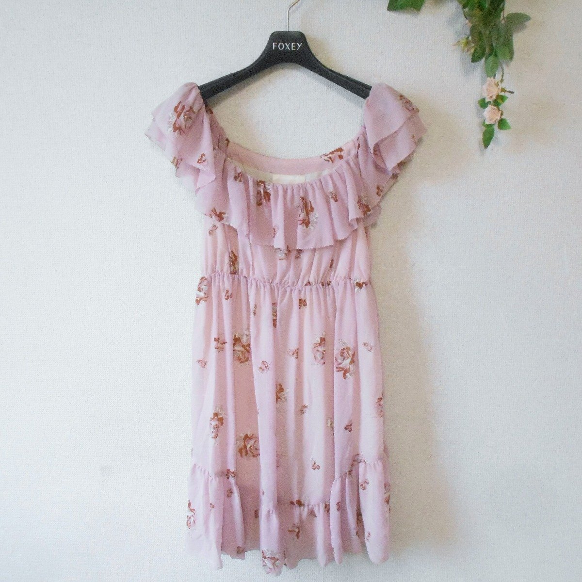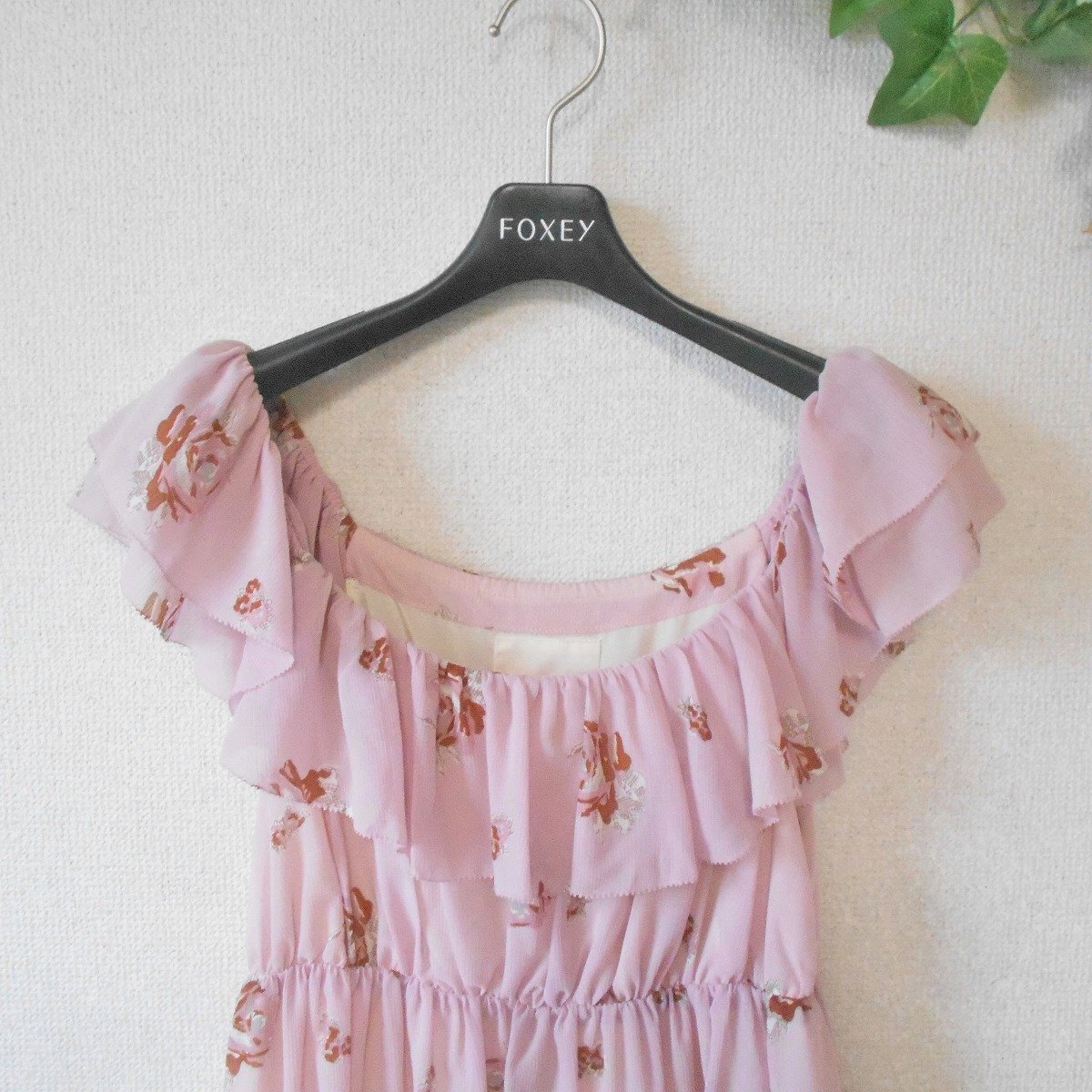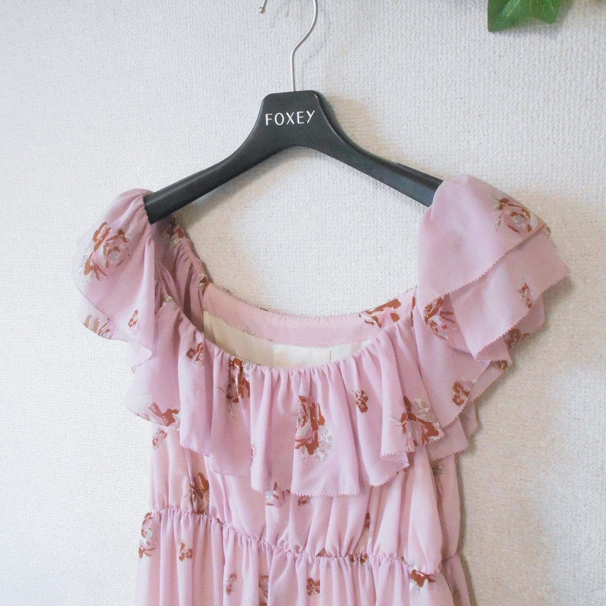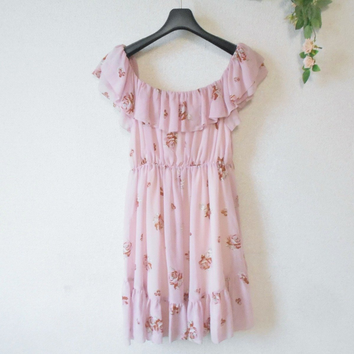 【ポイント】オンワード樫山、ローズブリットのワンピースになります。お色は透け感のあるピンク色ベースで多色使用のお花のプリントが全体に入っています。