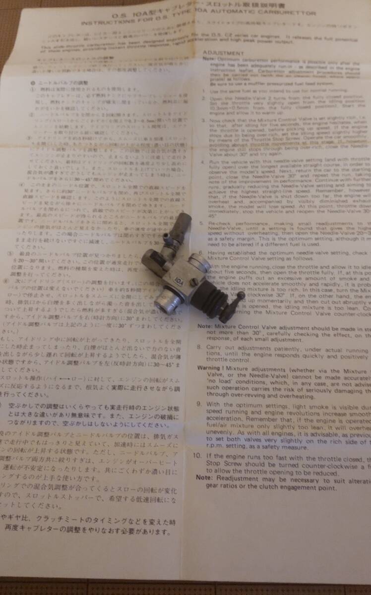 ラジコン O.S.ENGINE 10A型スライドキャブレター オリジナル取説付きです。