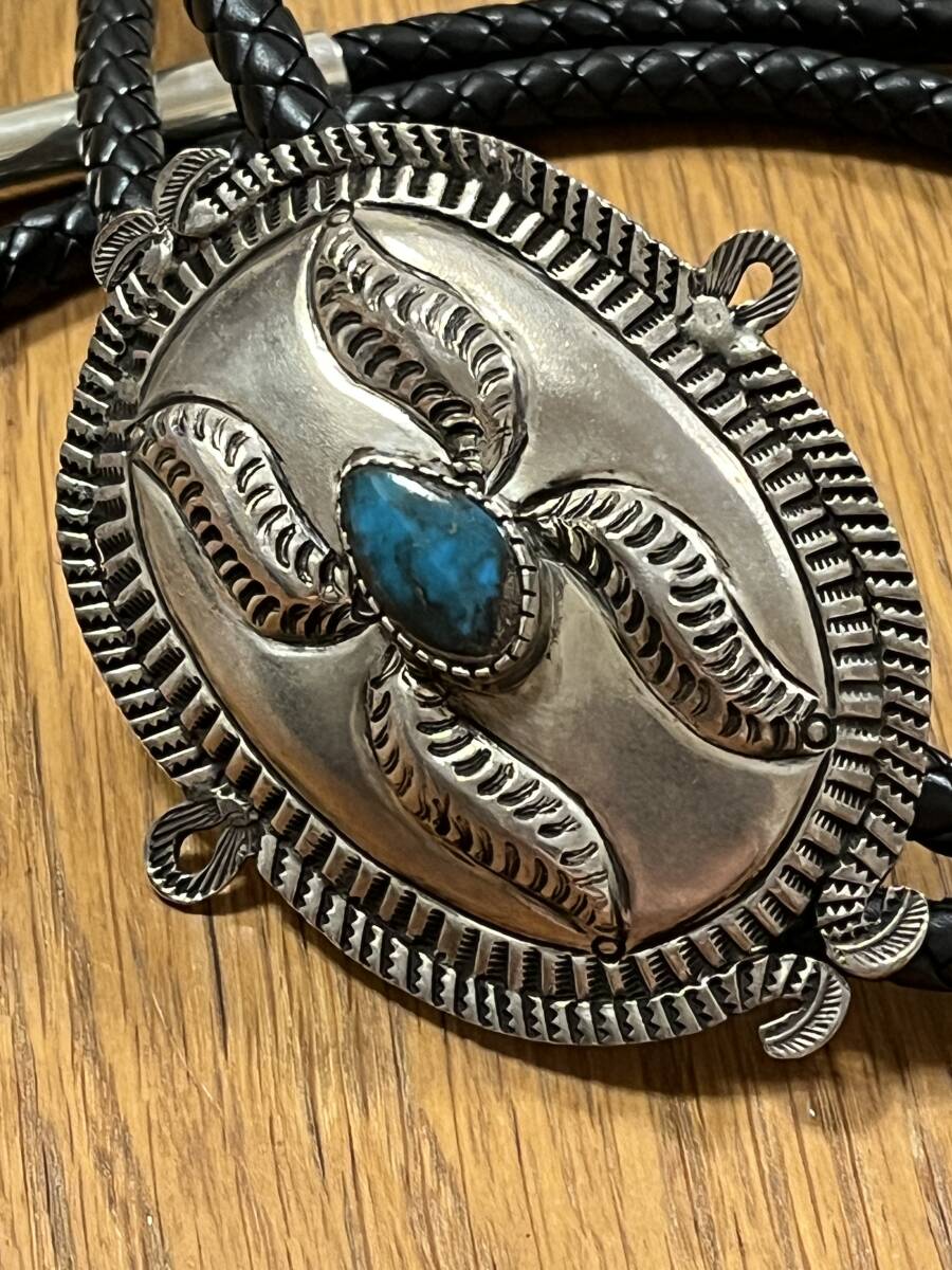 アーニーリスター Ernie Lister ビズビーターコイズ スタンプワーク ボロタイ ナバホ NAVAJO