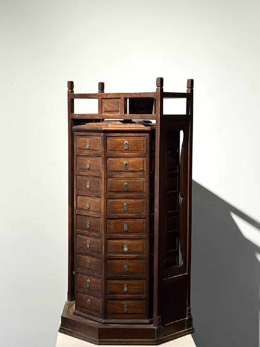 ■観心・時代旧蔵■B1094清時代 黄花梨藥箱 黄花梨木細密彫 超絶技巧 高手すり★古置物★古賞物★古擺件★蒐集家放出★高さ96cm横幅50cm