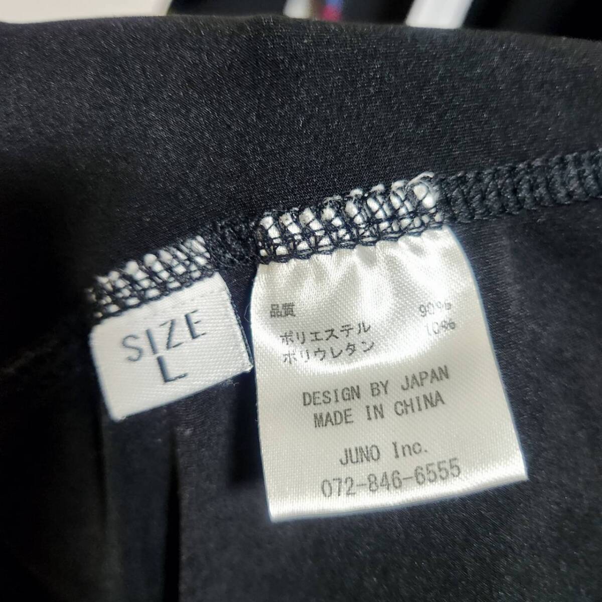 JUNOのフルジップジャージジャケットです。黒地にカラフルなラインテープが施されたスポーティーなデザインで、シンプルながら目を惹く1枚