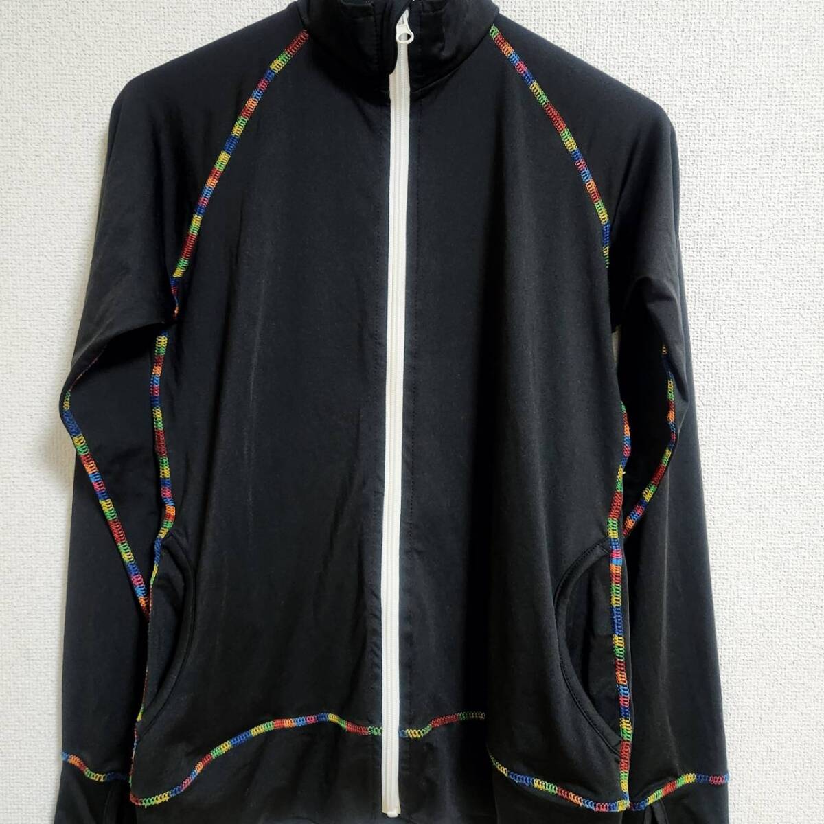 ジャージ ブラック ジャケット ラインデザイン L ランニング 運動用 美品