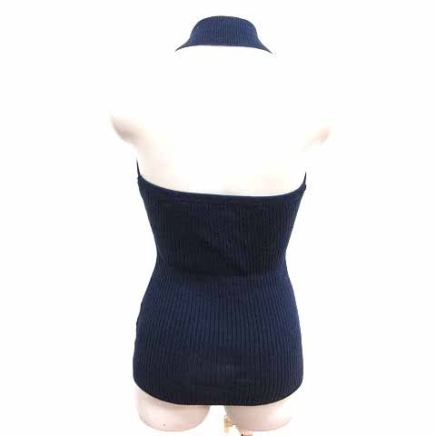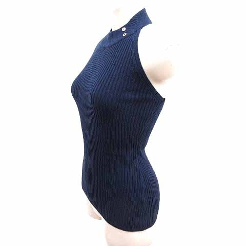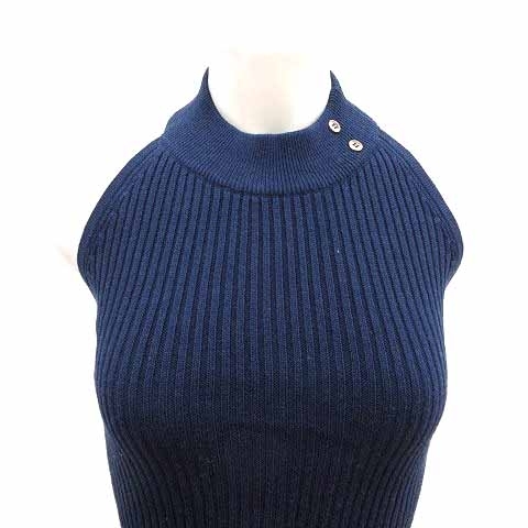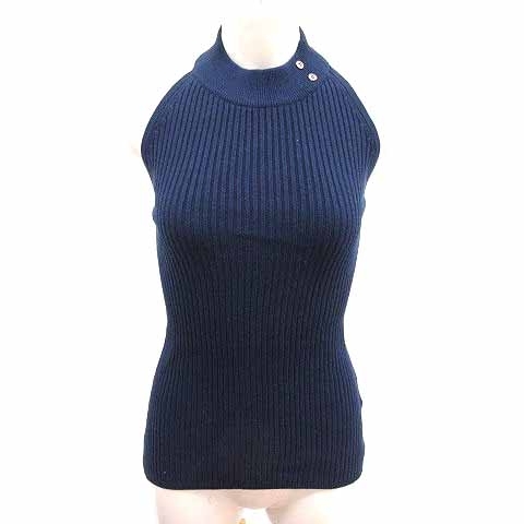 ミシェルマカロン michell Macaron ニット カットソー ハイネック ノースリーブ S 紺 ネイビー /YK レディース