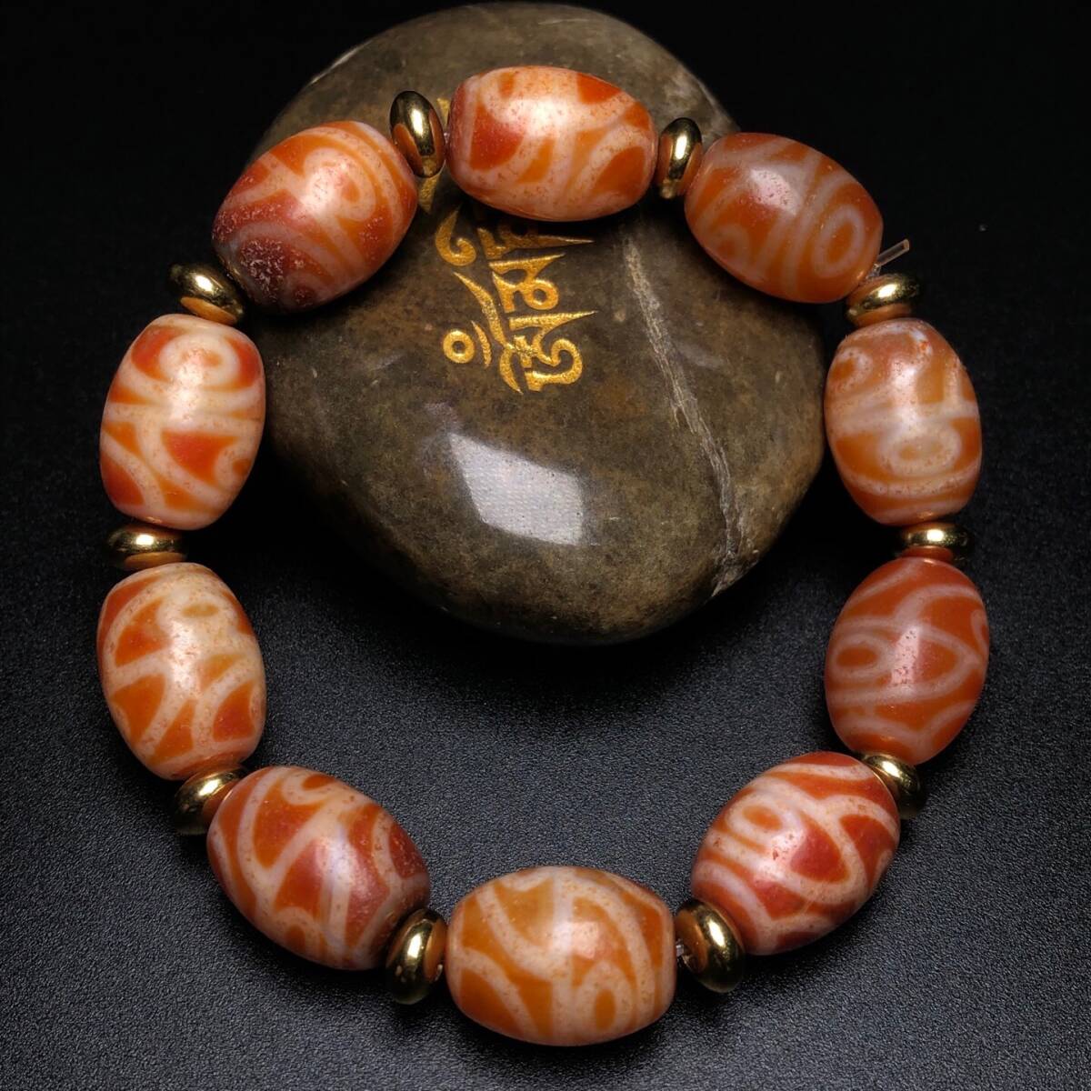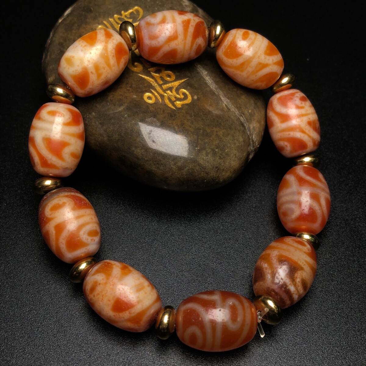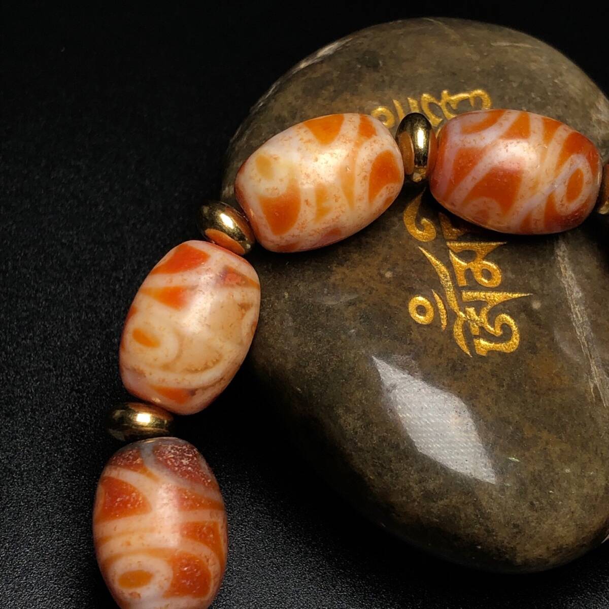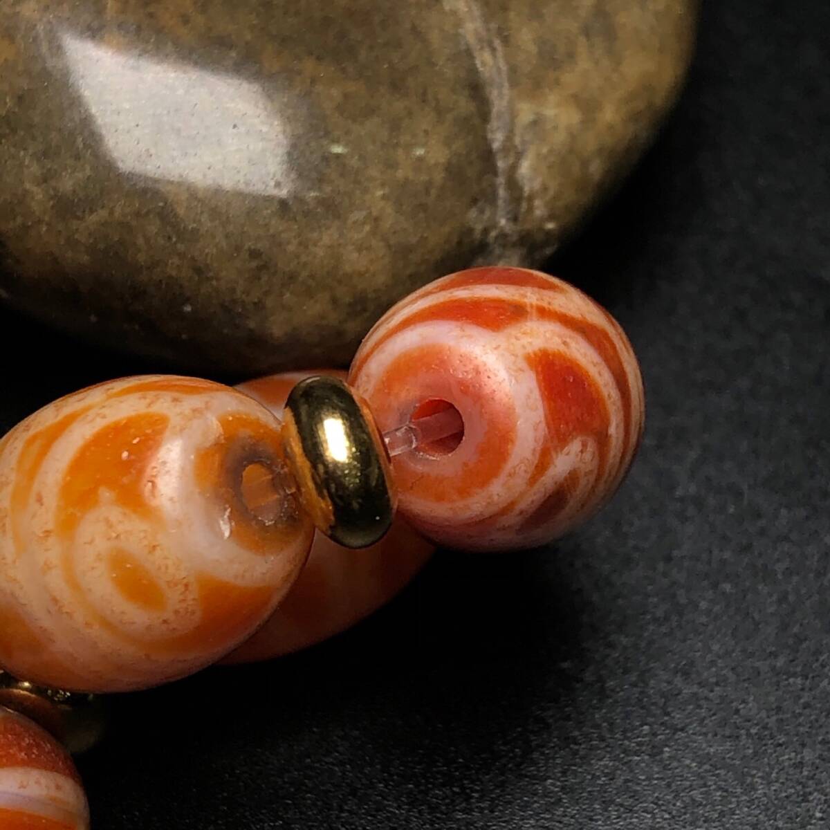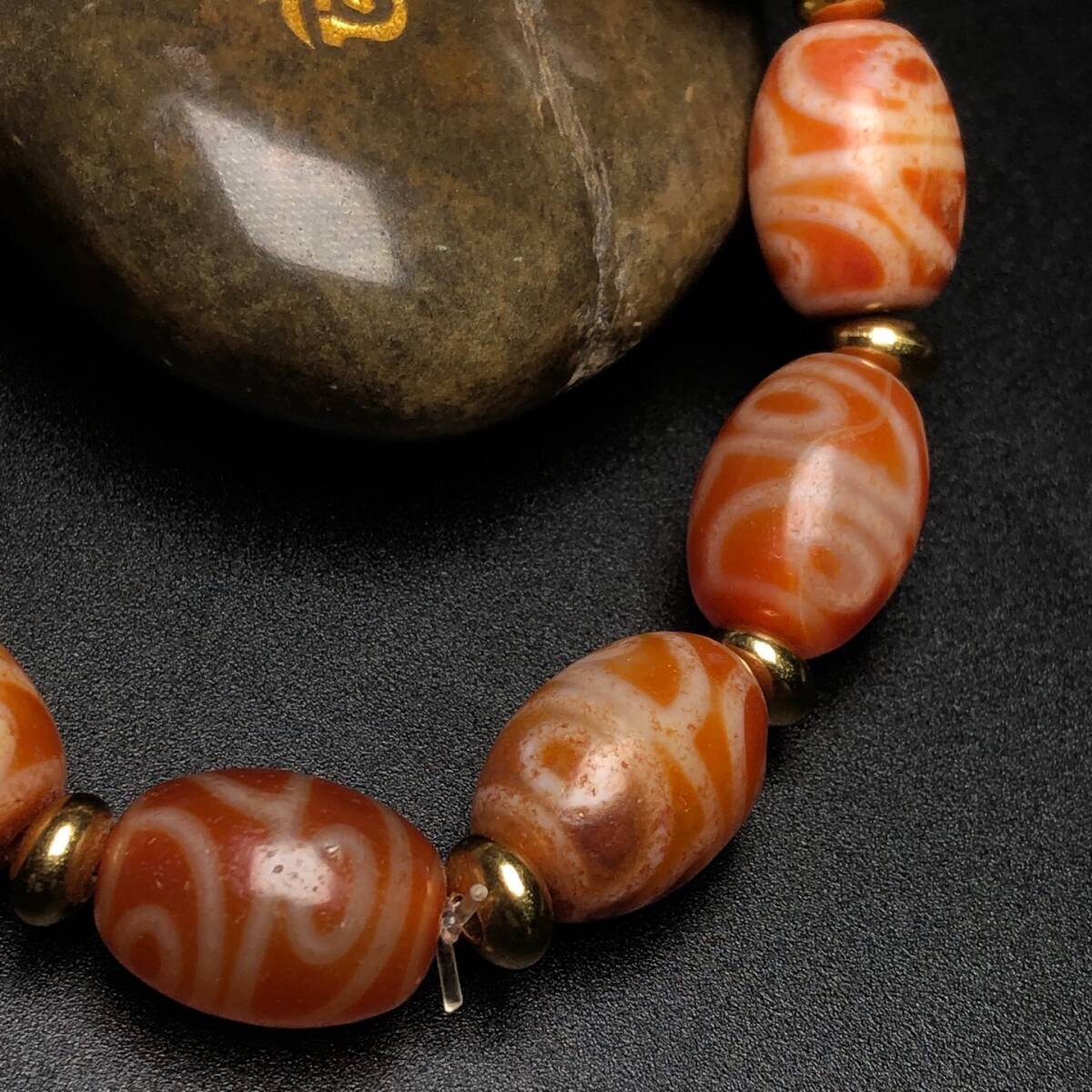▽鴻▽ 瑪瑙製 細密彫 四眼天珠チェーン 根付 裝身具 古賞物 中国古玩 中国古美術