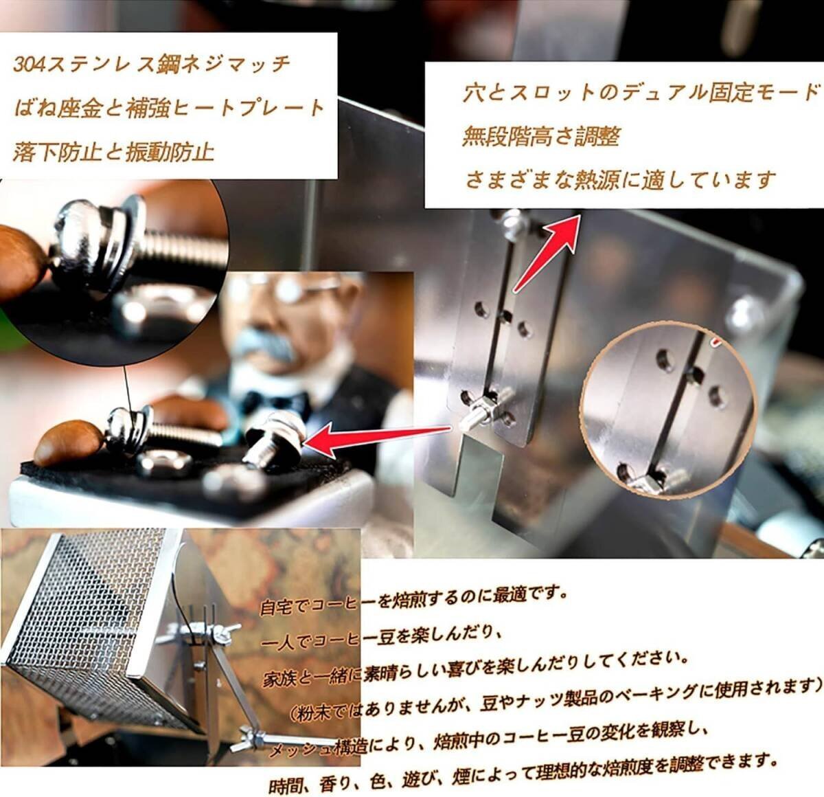 手回しコーヒーロースター :自宅でコーヒーを焼くのに最適です。自分でコーヒー豆を楽しみ、家族と一緒に素晴らしい喜びを味わうことができます。(粉末ではなく、豆やナッツ製品のベーキングに使用します。)ネット構造は、焙煎中のコーヒー豆の色の変化を観察し、タイミング、匂い、色、弾ける音、煙を通して理想的な焙煎度を定義するのに便利です。