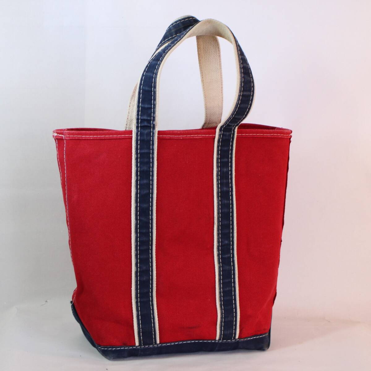 1980年代のL.L.BEAN(エルエルビーン)の、トールサイズの赤ベース紺色のヴィンテージトートバッグになります。