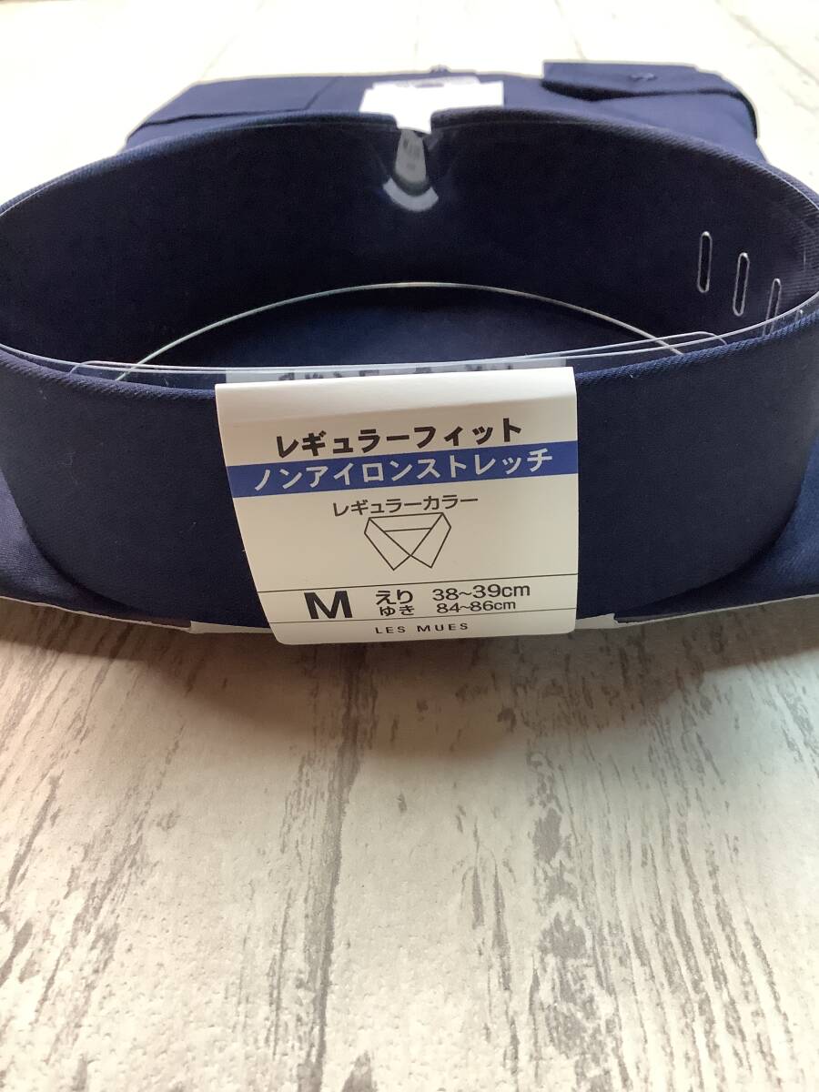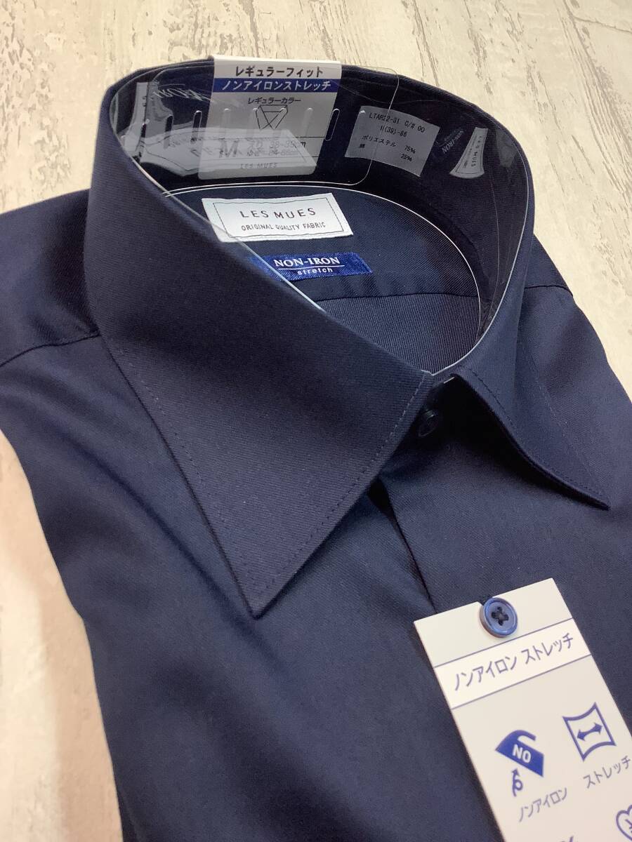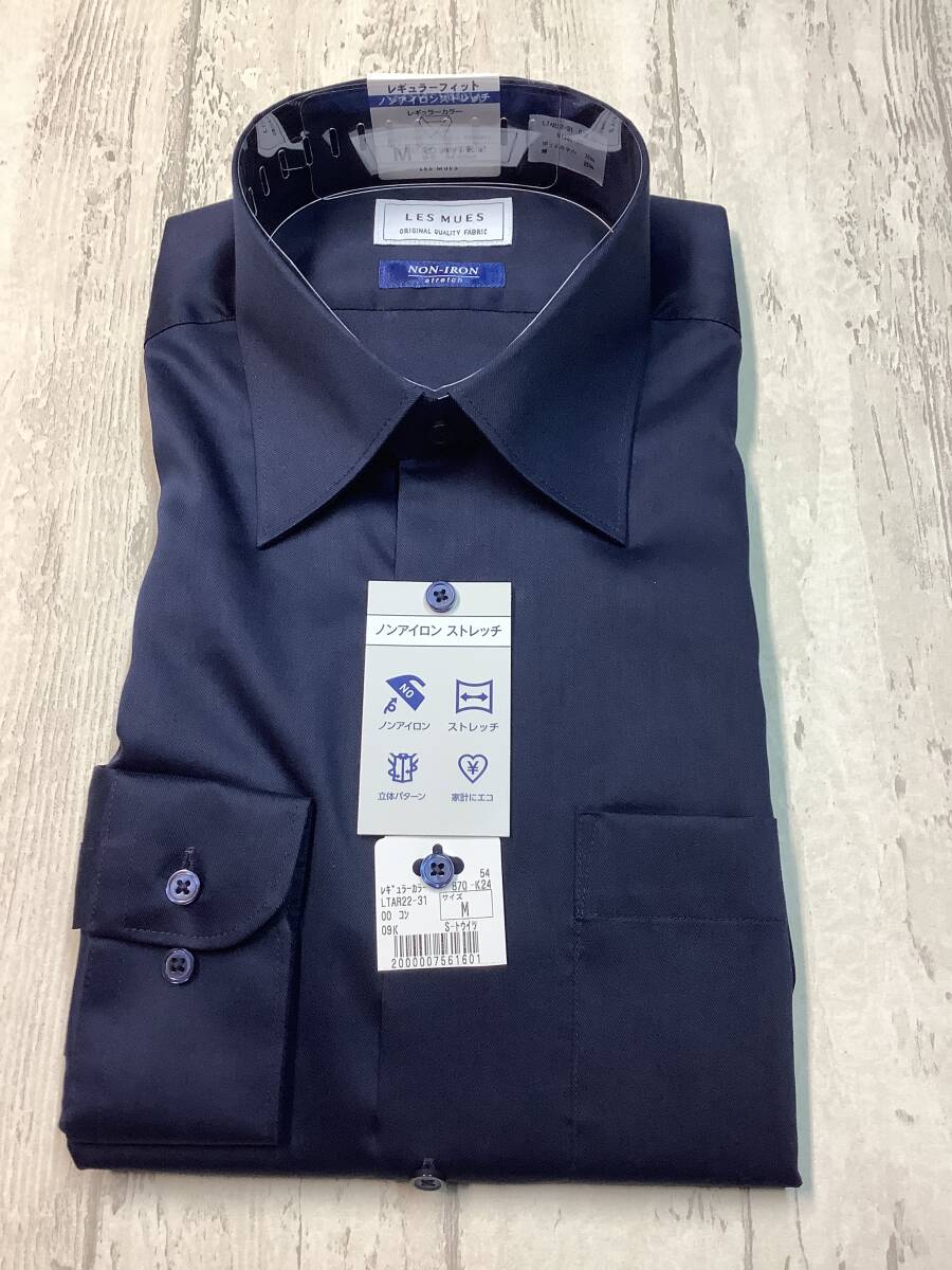 新品未使用 39-86 長袖Mサイズ  レギュラーカラードレスシャツ★綿ポリ ノンアイロン ストレッチ ★濃紺無地