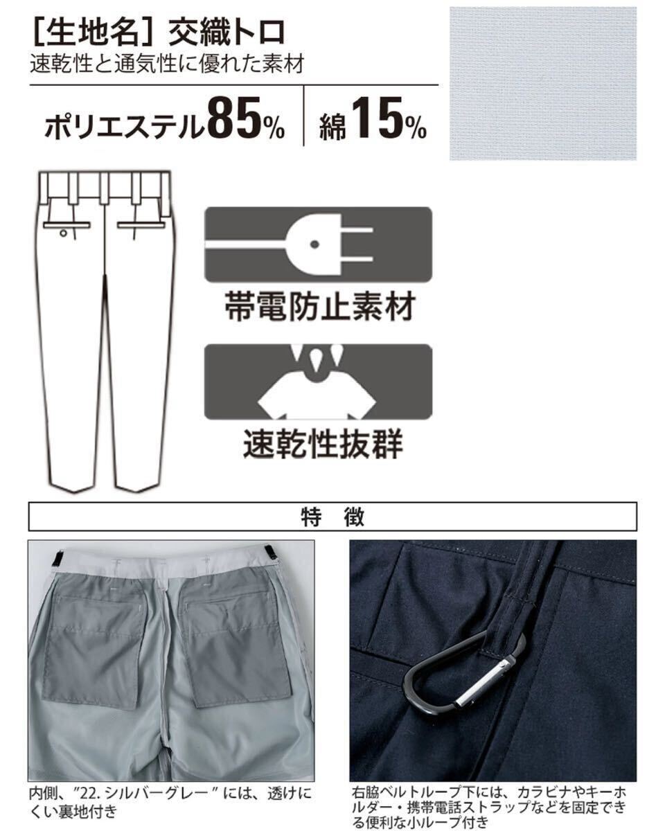 新品64039 ジーベックXEBEC 春夏用 ウエスト115cm シルバーグレー ノータックピタリティスラックス ワークパンツ 作業ズボン 作業服 1660