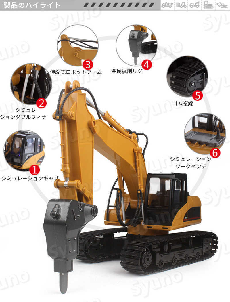 114重機ラジコン パワーショベル 2.4G プロジェクト掘削機 16CH 建機 リモートコントロール合金解体機 ラジコンカー 工事車両