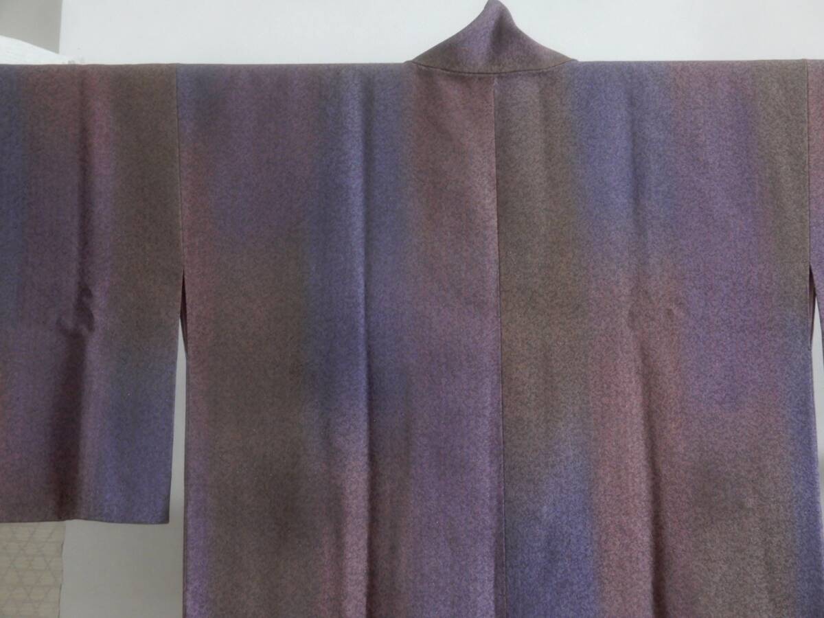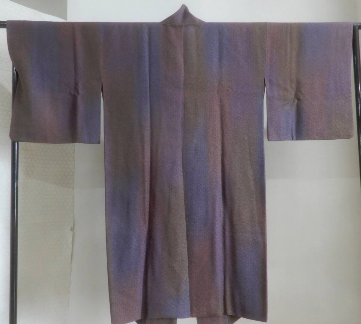 <銀の斧>正絹・着丈の長い和装コート・高級銀通し生地・着丈約114cm・ぼかし染め